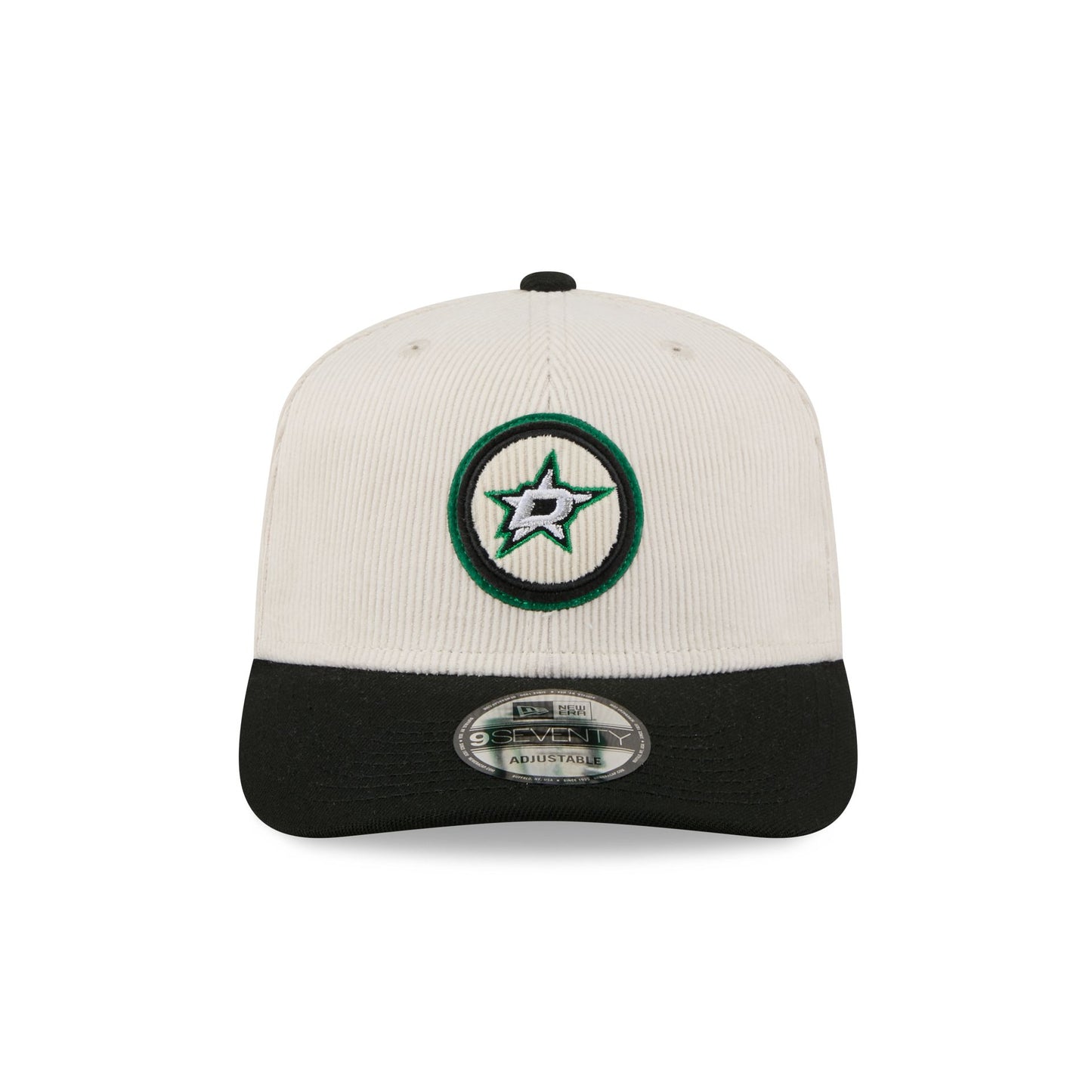 The Dallas Stars Loyal Corduroy 9SEVENTY Stretch-Snap features an embroidered Stars logo at the front panels against a corduroy fabrication throughout the cap. Additional details include an alternate logo at the right-wear side with an adjustable stretch-snap closure at the rear.