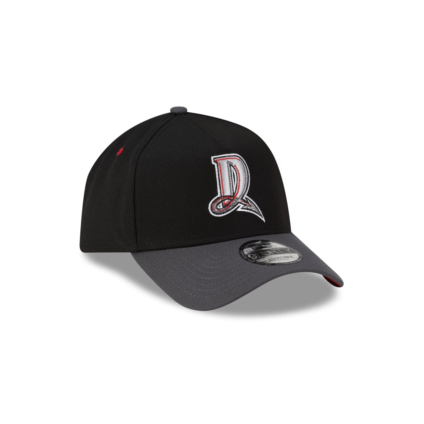 The Dayton Dragons Halloween Red 9FORTY A-Frame Snapback features an embroidered Dragons themed logo at the front panels with an adjustable snapback closure at the rear, a gray visor, and a red undervisor.