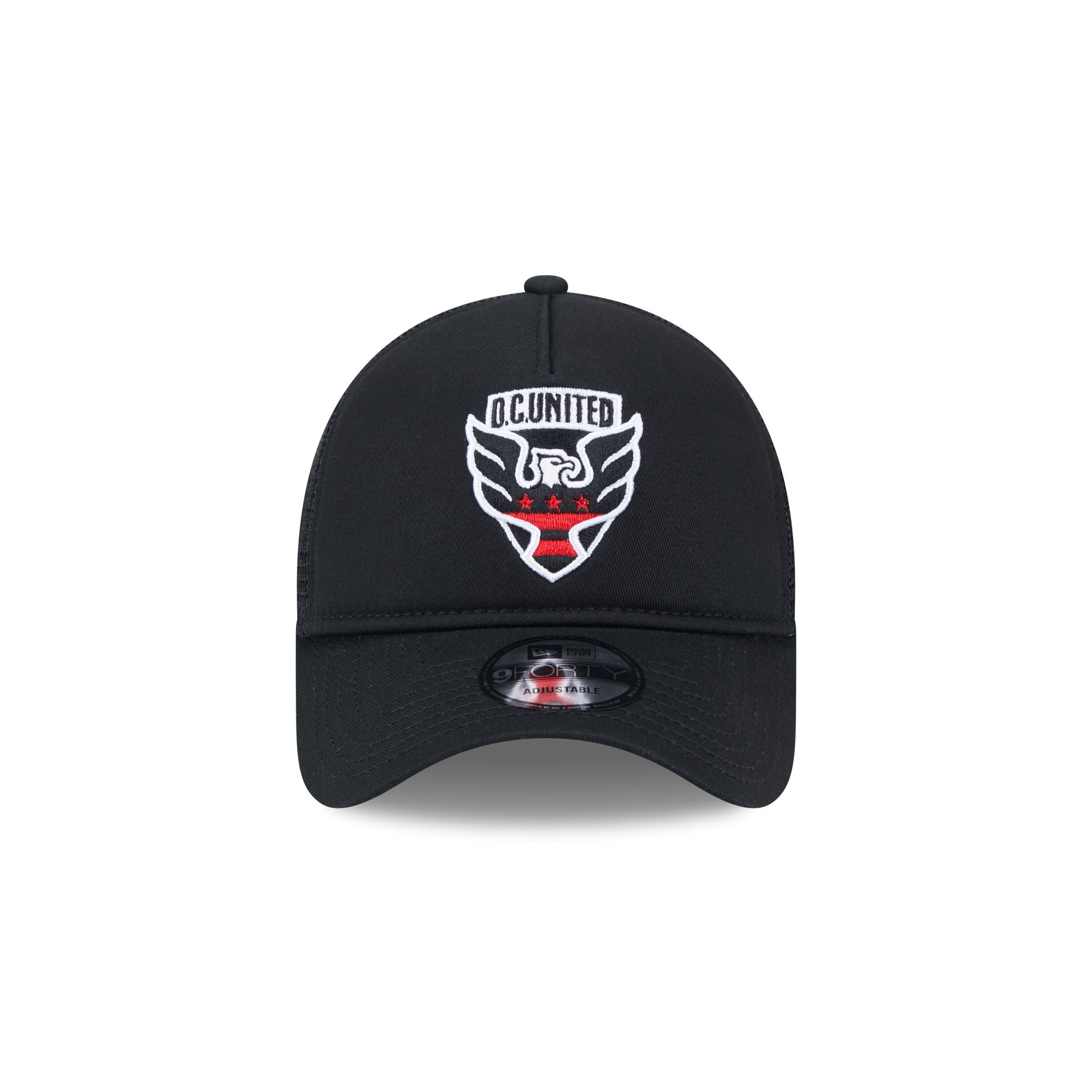 The D.C. United Team 9FORTY A-Frame Snapback features an embroidered D.C. United logo at the front panels with a mesh back and a snapback closure at the rear.