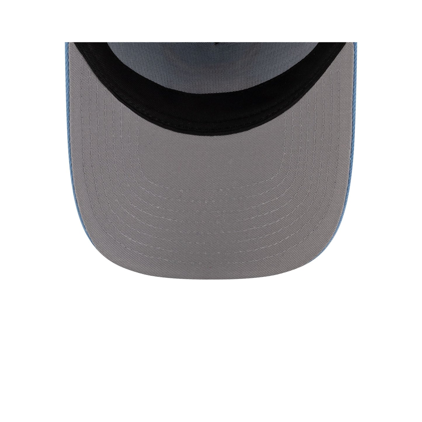 The Delaware State Hornets 9FORTY A-Frame Snapback features an embroidered Hornets logo at the front panels with a snapback closure at the rear and a gray undervisor.