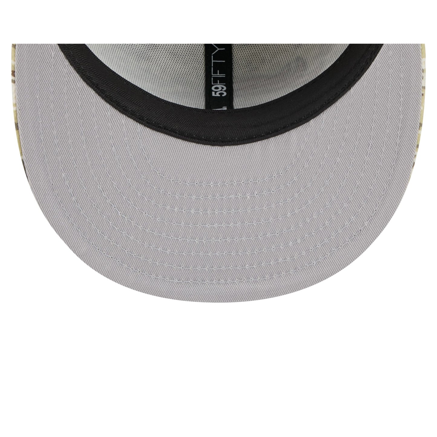 The Denver Broncos 2025 Salute to Service Fan Gear 59FIFTY Fitted Cap features an embroidered Broncos logo at the front panels with the official NFL Salute to Service patch at the rear, an American flag patch at the right-wear side, and a gray undervisor.