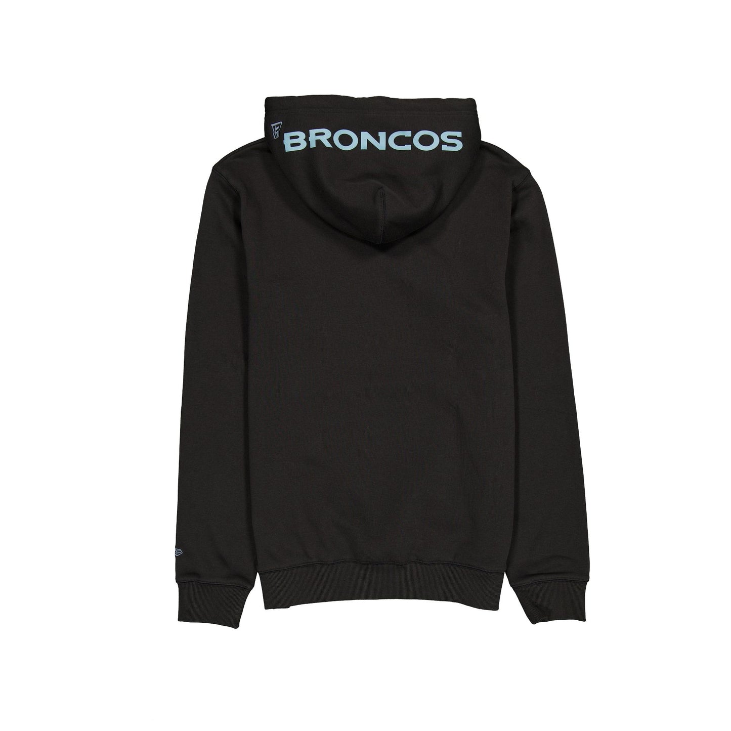 The Denver Broncos Black Realtree Hoodie features an embroidered Broncos reflective ink Realtree applique with kangaroo pockets, blue Realtree lining, and a team wordmark at the hood.