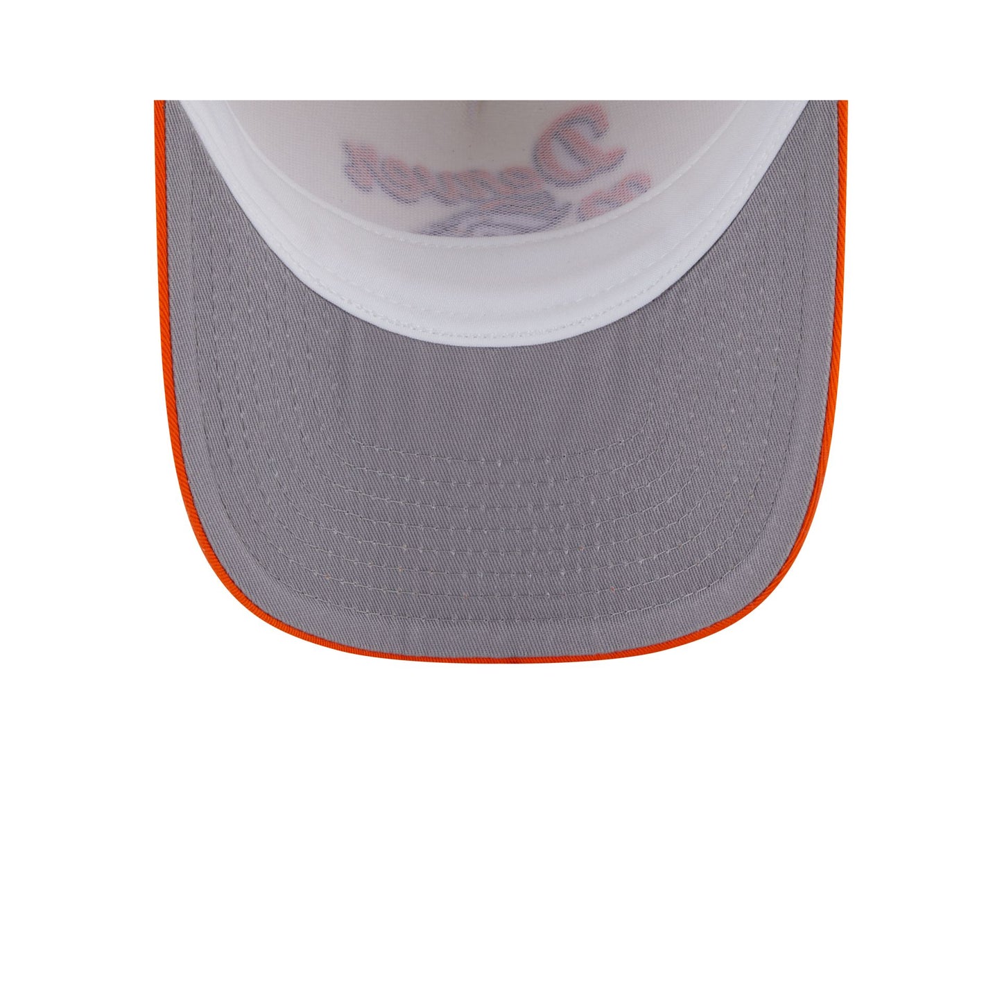 The Denver Broncos Chainstitch 9FIFTY A-Frame Snapback features a chainstitch Broncos logo and script wordmark at the front panels with a snapback closure at the rear and a gray undervisor.