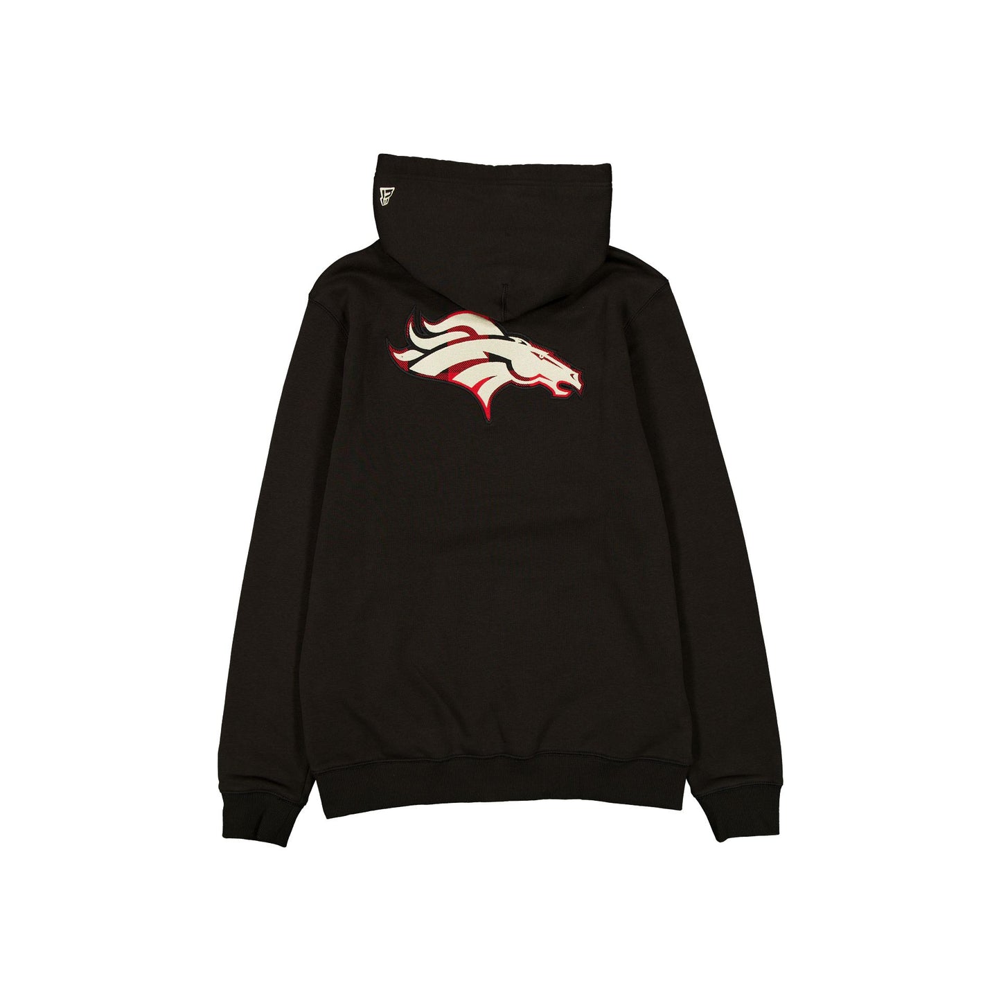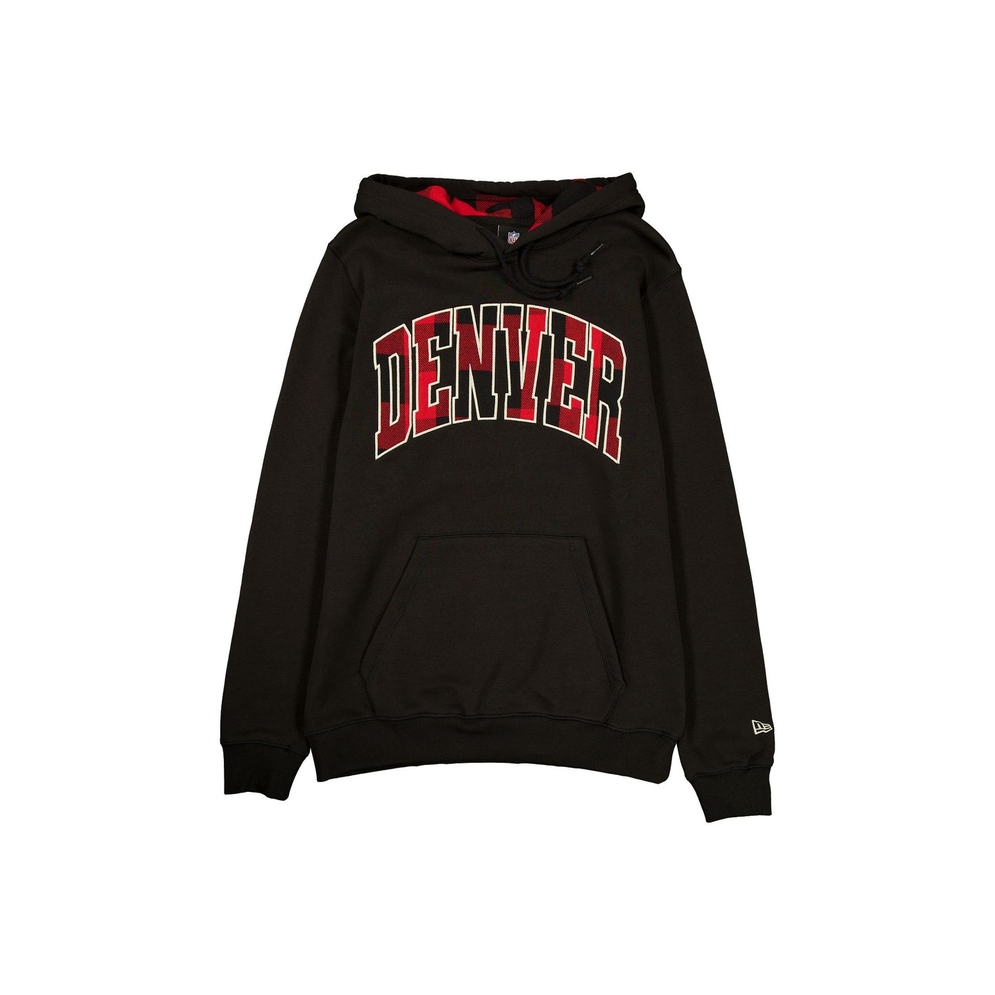The Denver Broncos Evergreen Check Hoodie features an embroidered applique Broncos checkered wordmark at the front with a matching interior hood and logo at the rear. Additional details include kangaroo pockets and adjustable drawstrings at the hood.