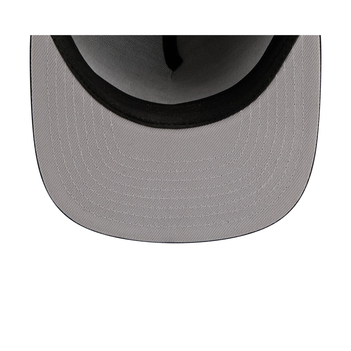 The Denver Broncos Grunge Plaid 9FIFTY A-Frame Adjustable Cap features an embroidered Broncos logo at the front panel with an alternative logo above an adjustable metal clasp closure at the rear, a black visor, and a gray undervisor.