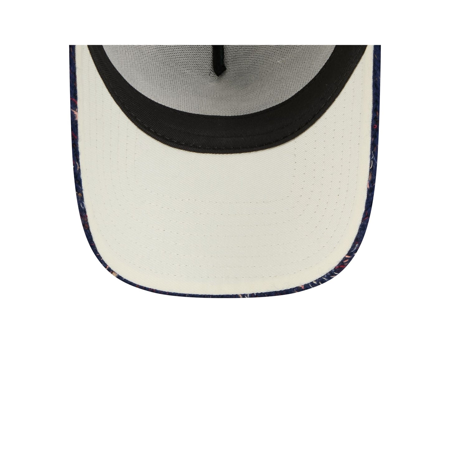 The Denver Broncos Knit Women's 9FORTY A-Frame Trucker features an embroidered Broncos logo at the front knit panels. Additional details include a snapback closure at a mesh rear and white undervisor.