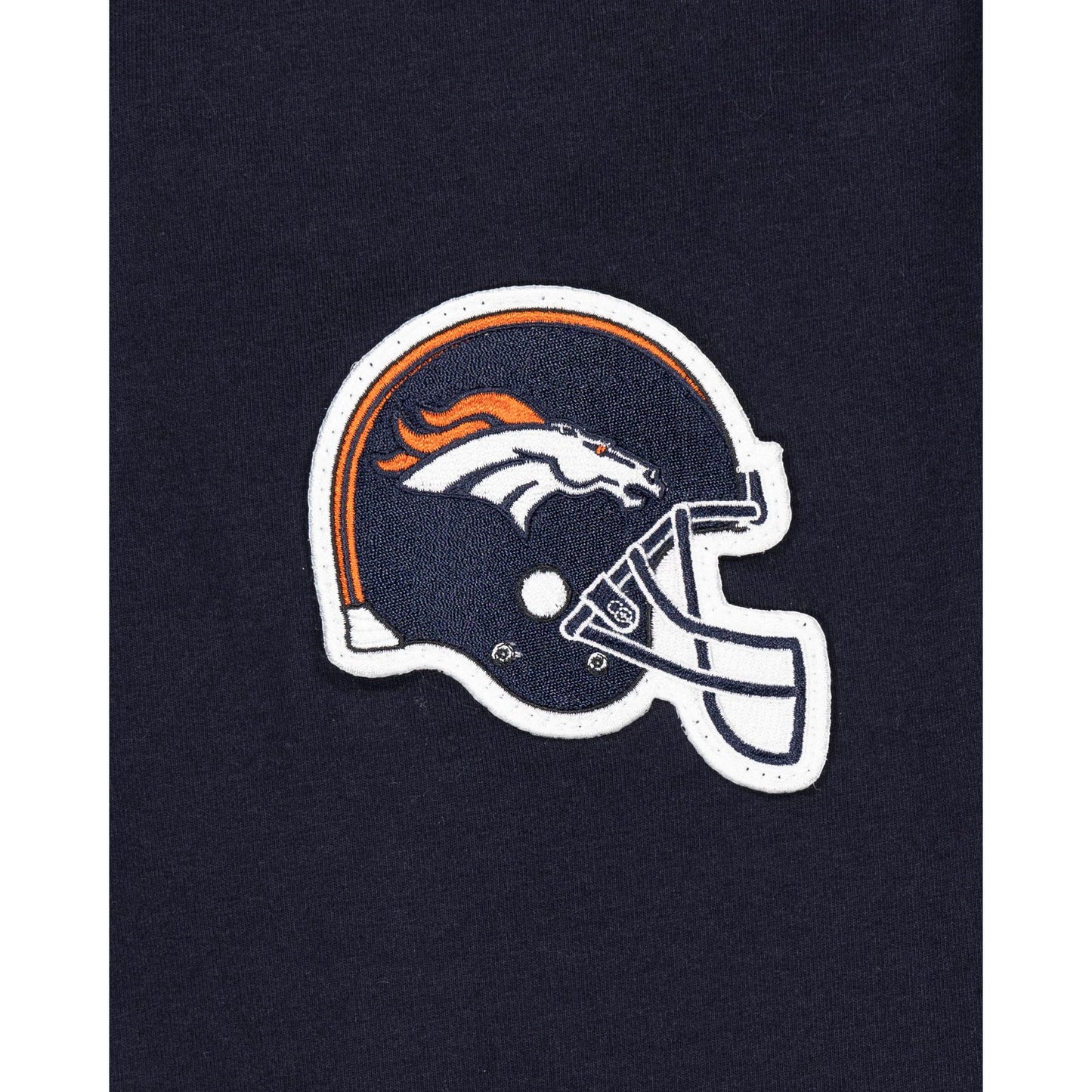 The Denver Broncos Logo Select Hoodie features a chenille applique Broncos logo at the left chest with team patches at each sleeve and an embroidered team wordmark at the rear.