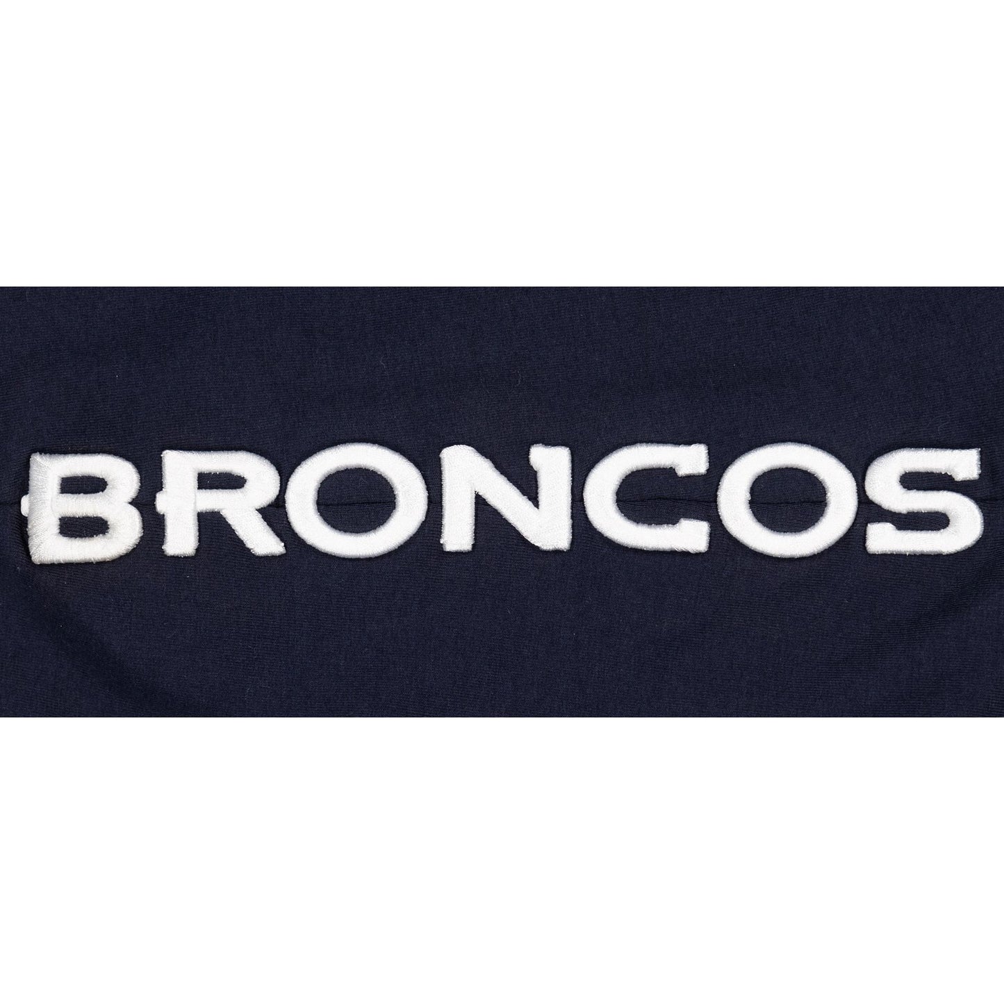 The Denver Broncos Logo Select Jogger features a chenille applique Broncos logo and embroidered wordmark at the left leg with an alternate team logo at the right ankle.