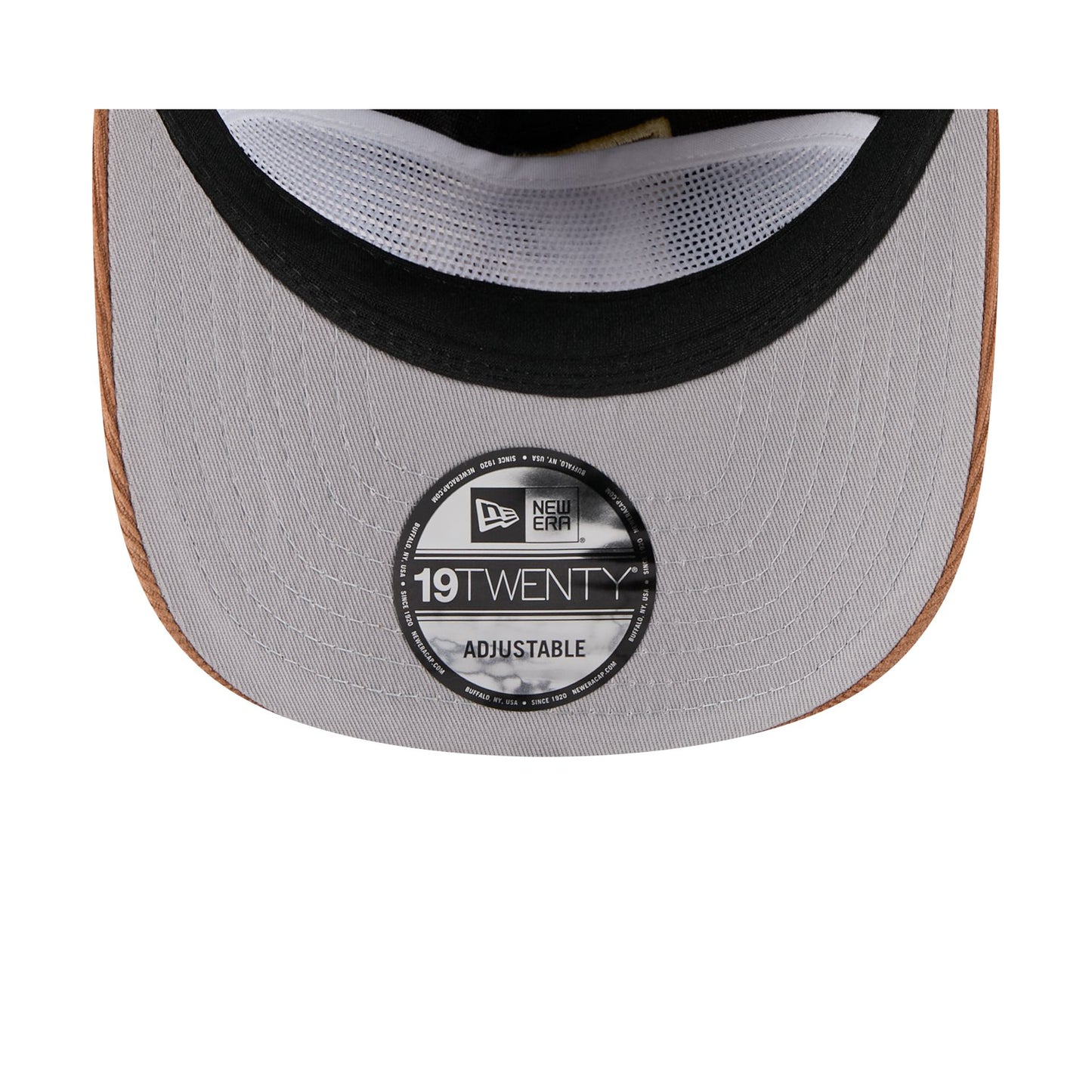 The Denver Broncos Nostalgic Brown Corduroy 19TWENTY Adjustable Cap features an embroidered Broncos Historic logo at the front panel with a snapback closure at the rear and a gray undervisor.