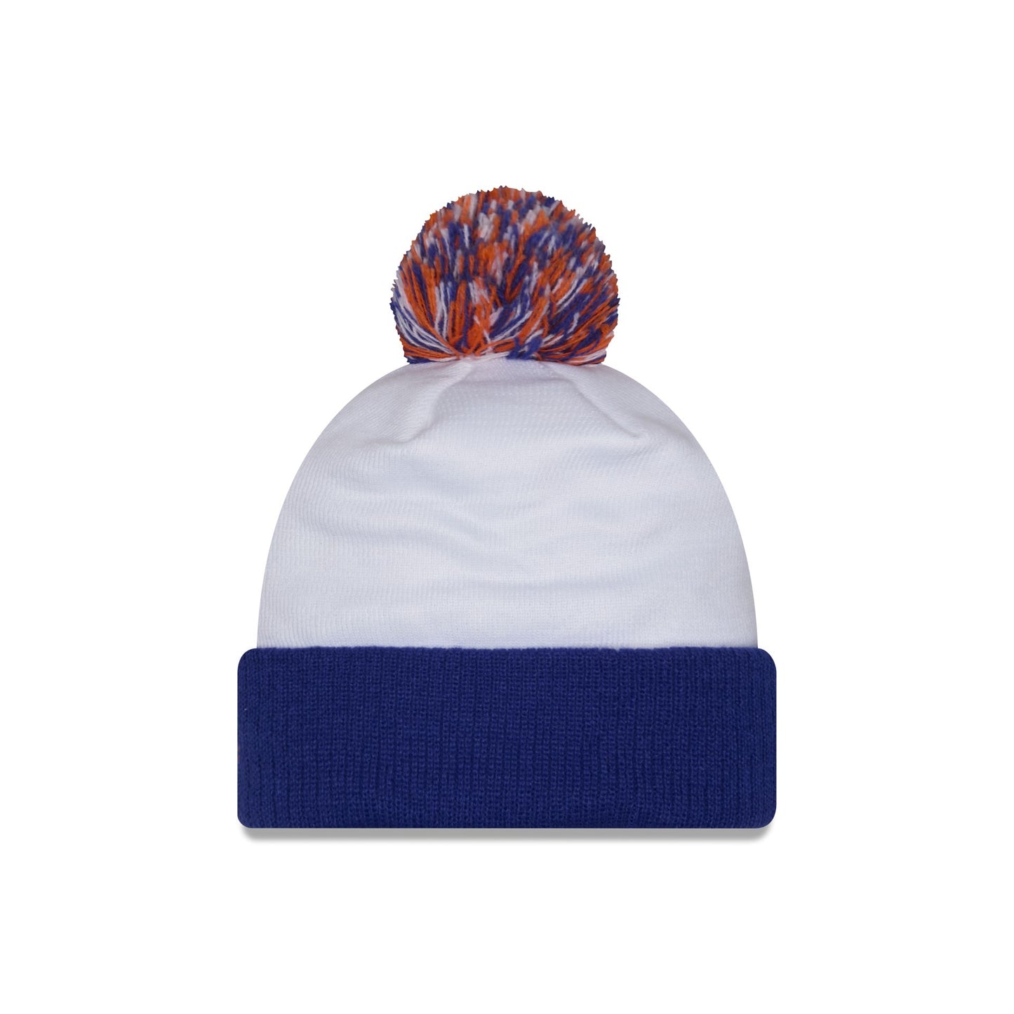 The Denver Broncos Spirit Pom Knit features a screen-printed Broncos Historic graphic at the crown with a one-time removable pom.