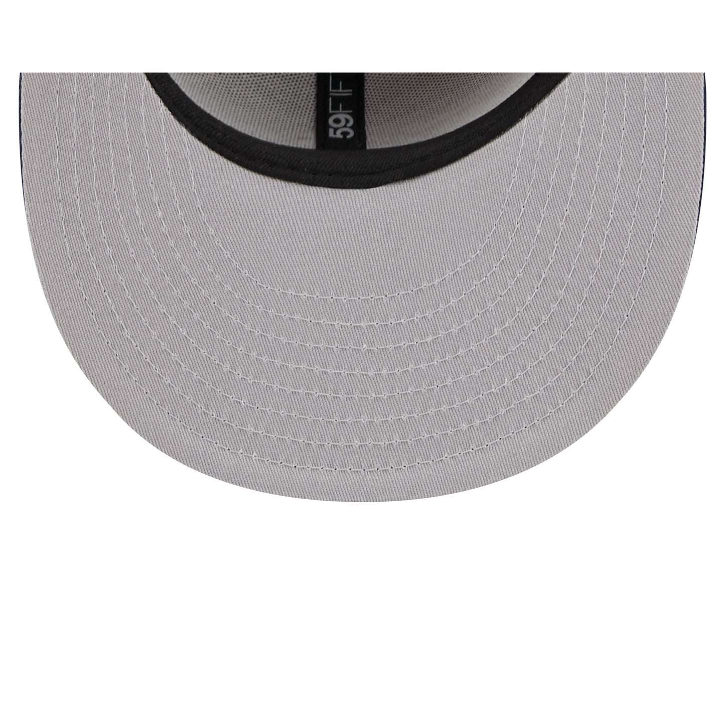 The Denver Nuggets 2024 Draft 59FIFTY Fitted Cap features an embroidered Nuggets logo and team wordmark at the front panels with the official NBA Logoman at the rear and a gray undervisor.