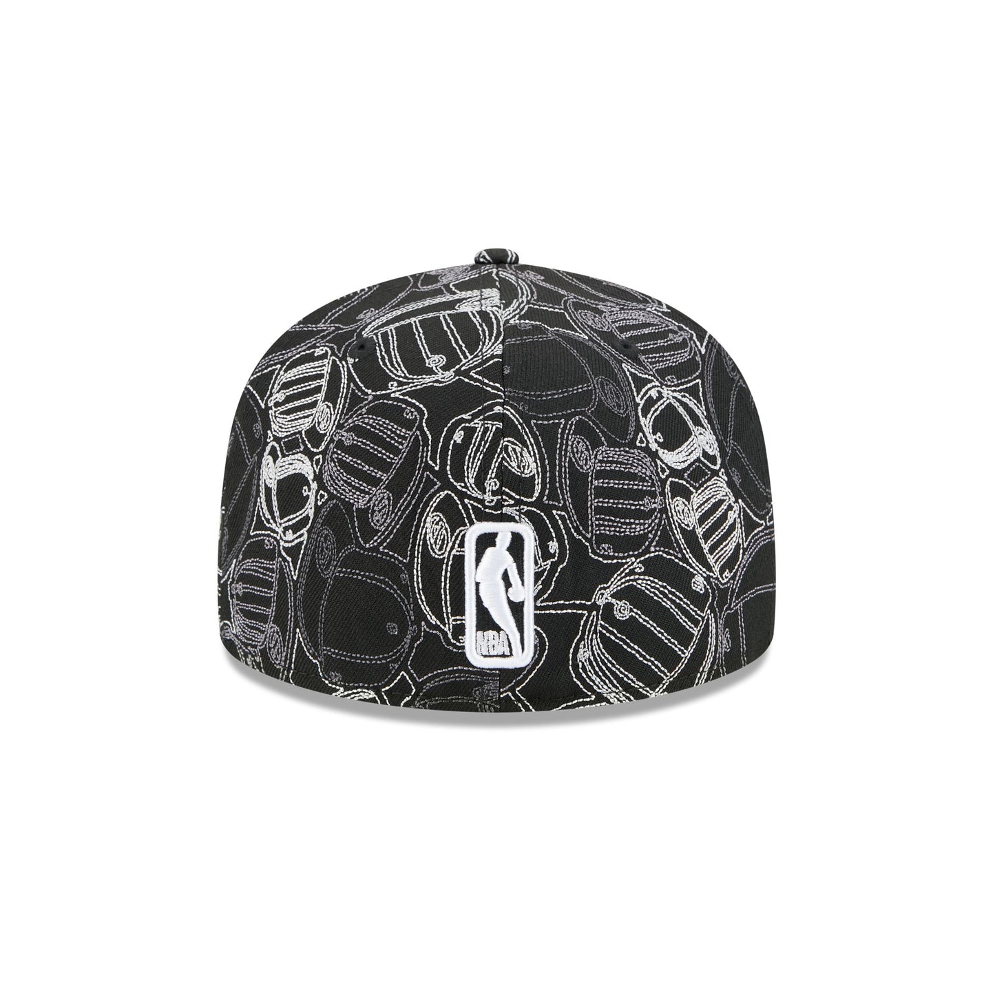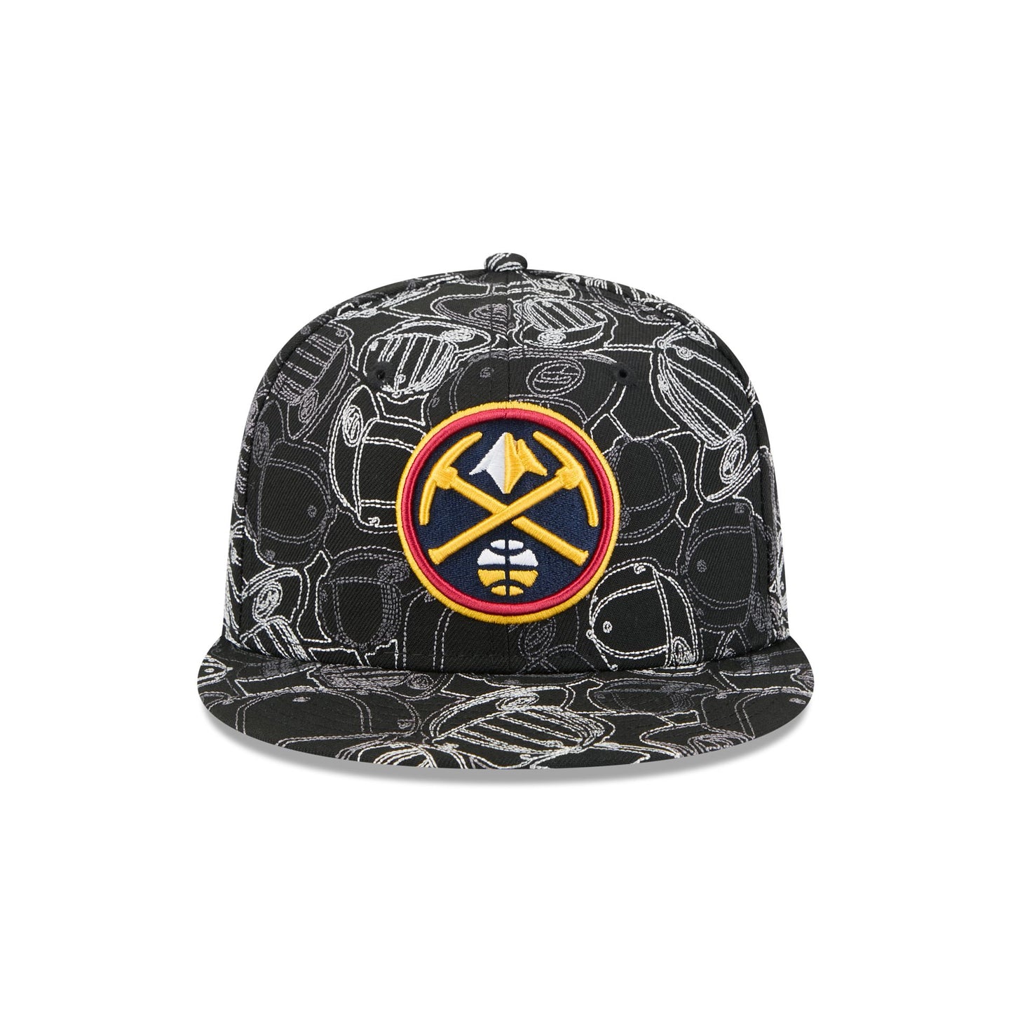 The Denver Nuggets Cap Scramble 59FIFTY Fitted Cap features an embroidered Nuggets logo at the front panels with chainstitched allover cap patterned fabrication, an NBA Logoman at the rear, and a gray undervisor.
