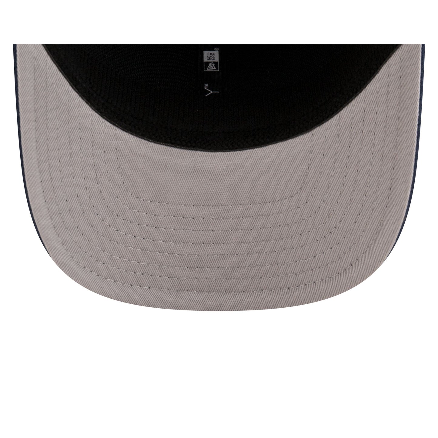 The Denver Nuggets Team 9SEVENTY Stretch-Snap features an embroidered Nuggets logo at the front panels with the NBA Logoman above an adjustable stretch-snap closure at the rear and a gray undervisor.