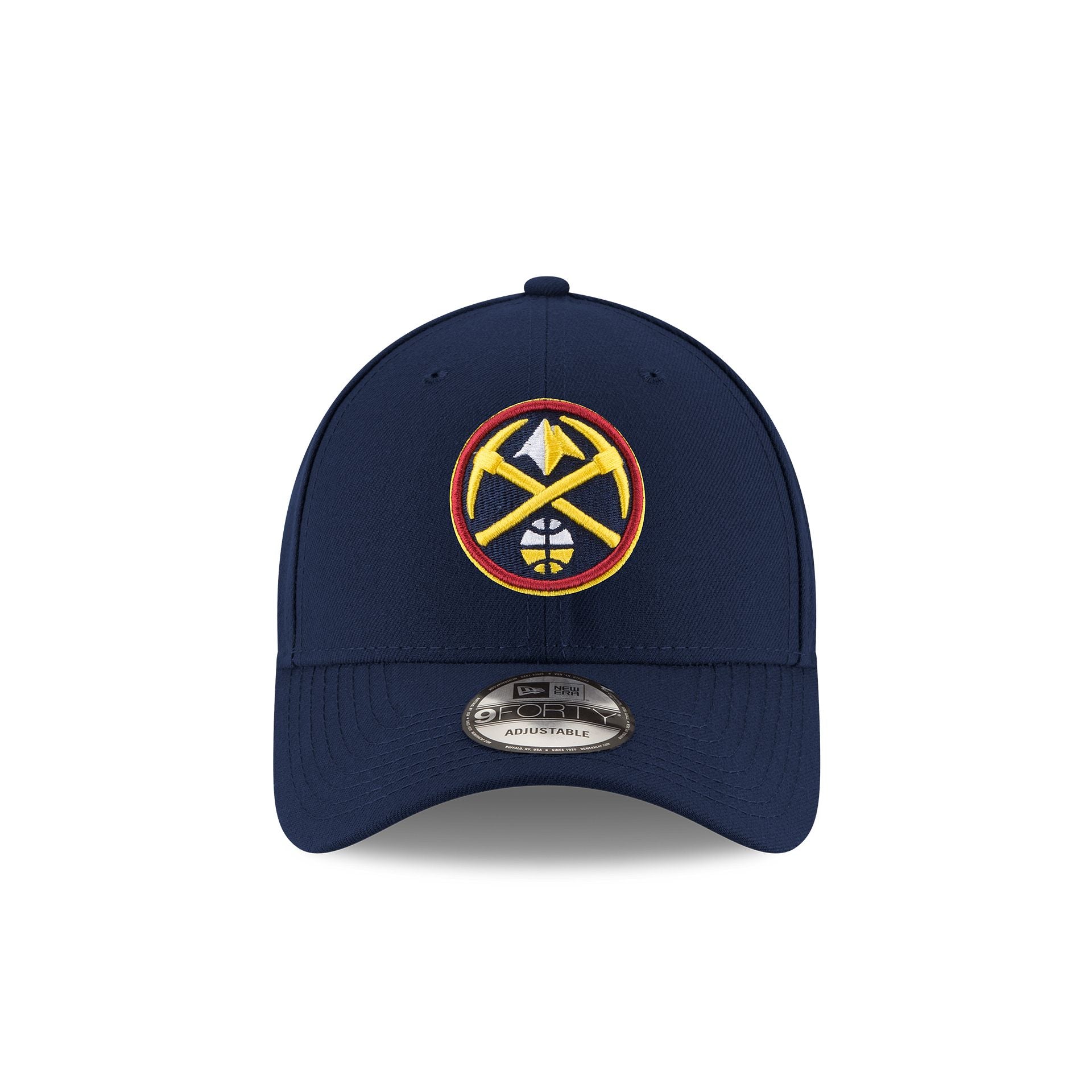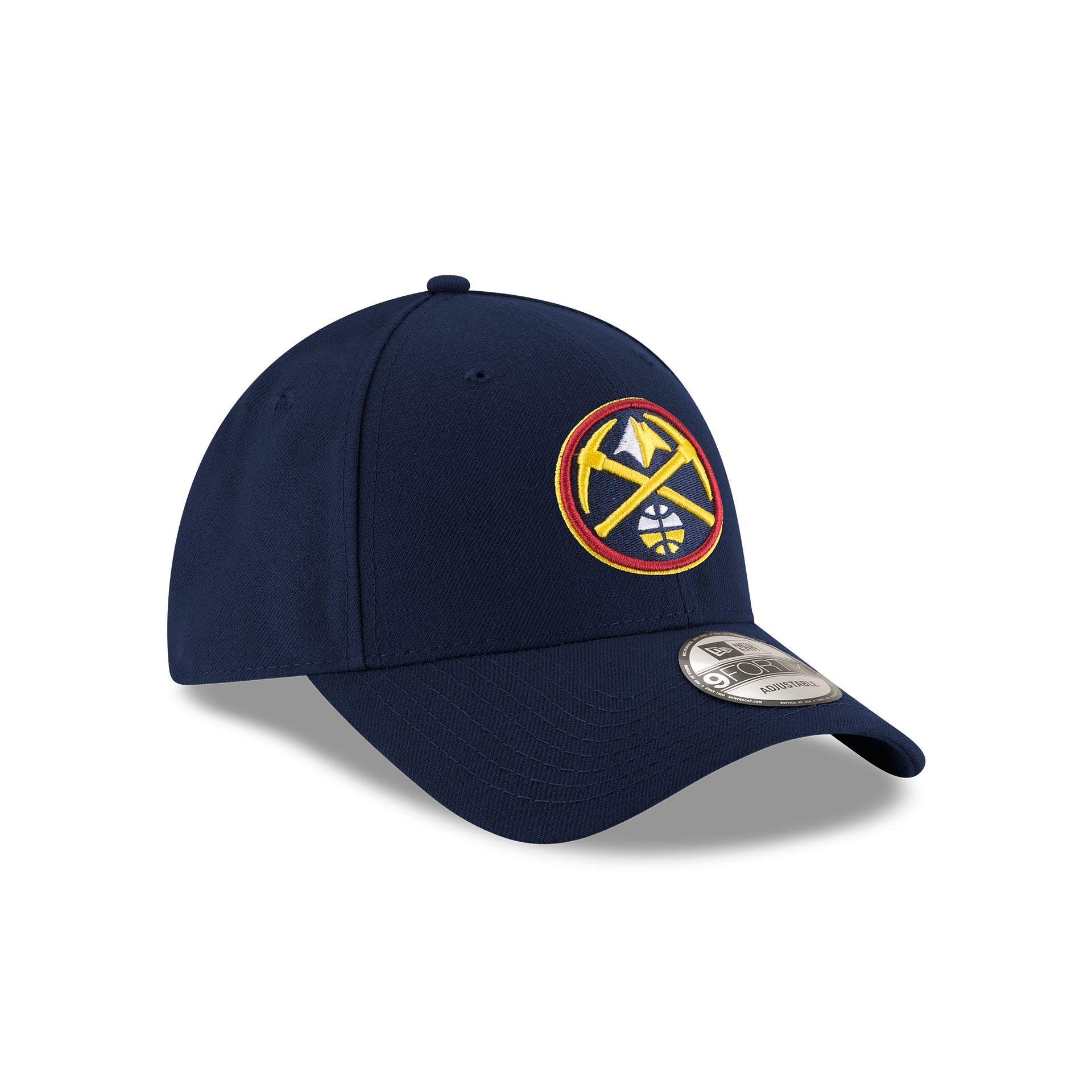 The Denver Nuggets The League 9FORTY Adjustable Cap features an embroidered Nuggets logo at the front panels with a matching logo and team wordmark on a hook-and-loop closure at the rear.
