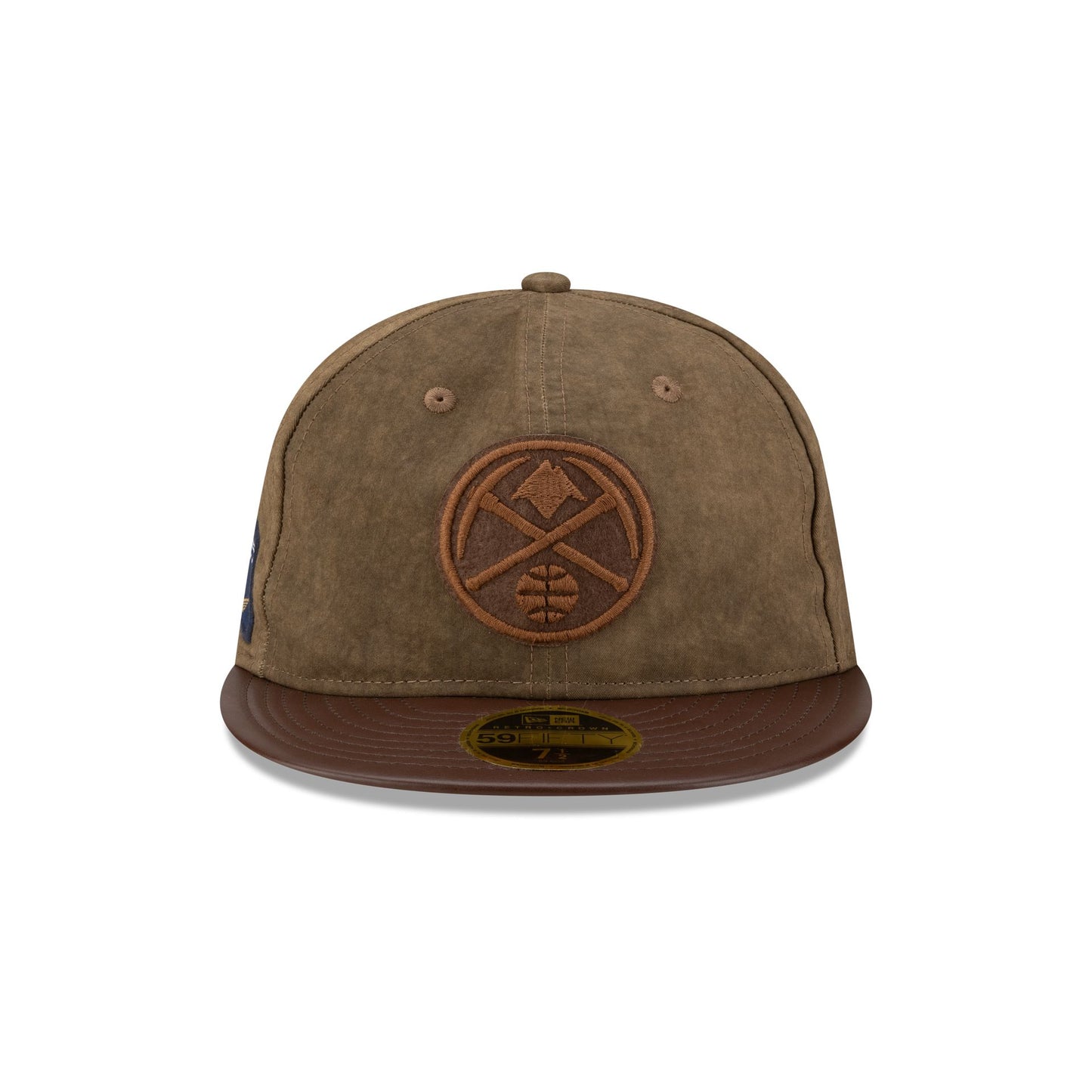 The Denver Nuggets Utility Linen Retro Crown 59FIFTY Fitted Cap features an embroidered Nuggets logo at the front panels with a team patch at the right-wear side. Additional details include a faux leather visor and the NBA Logoman at the rear.