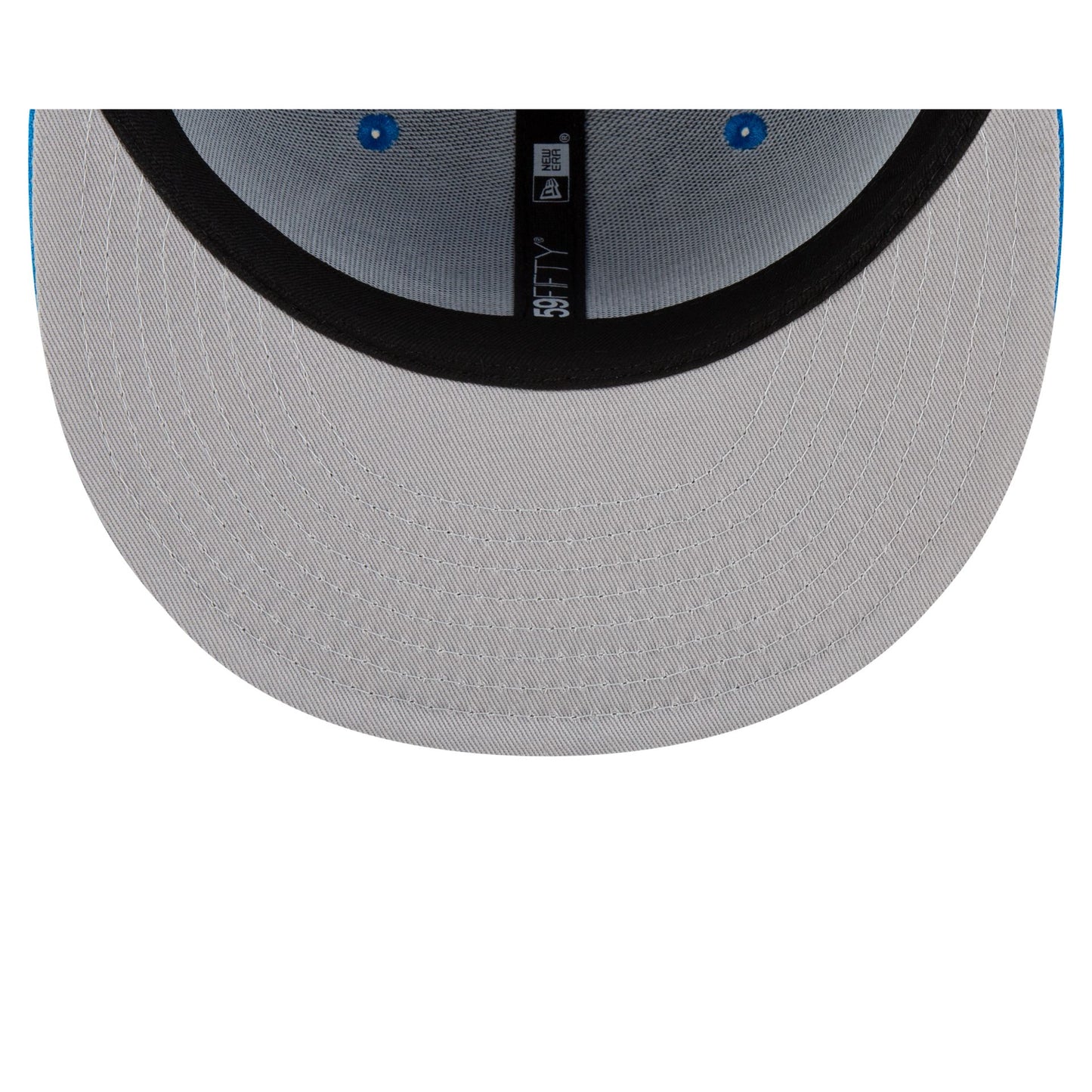 The Detroit Lions Basic Blue 59FIFTY Fitted Cap features an embroidered Lions logo at the front panels with a team wordmark at the rear and a gray undervisor.