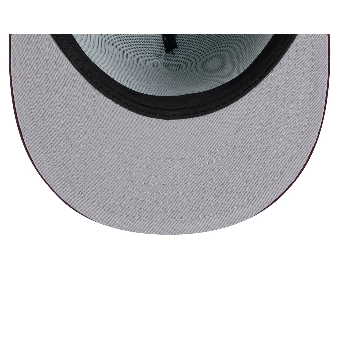 The Detroit Lions Beach Kiss Blue 59FIFTY A-Frame Fitted Cap features an embroidered Lions logo at the front panels with a matching NFL Shield at the rear. Additional details include a 75th Season patch at the right-wear side and a gray undervisor.