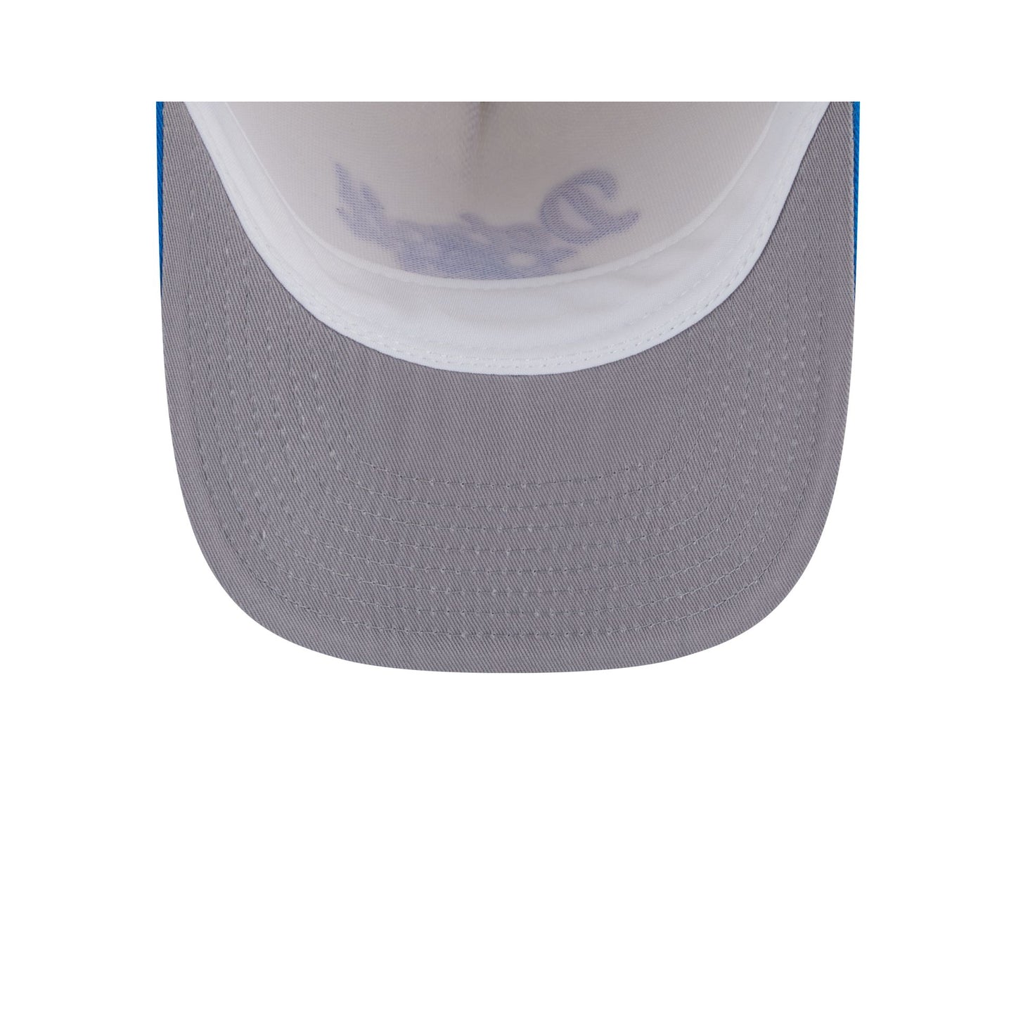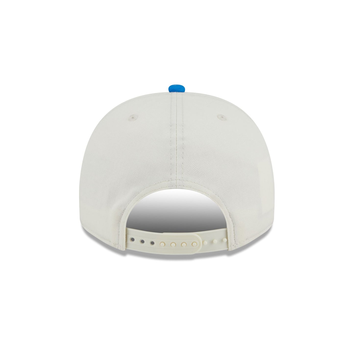 The Detroit Lions Chainstitch 9FIFTY A-Frame Snapback features a chainstitch Lions logo and script wordmark at the front panels with a snapback closure at the rear and a gray undervisor.
