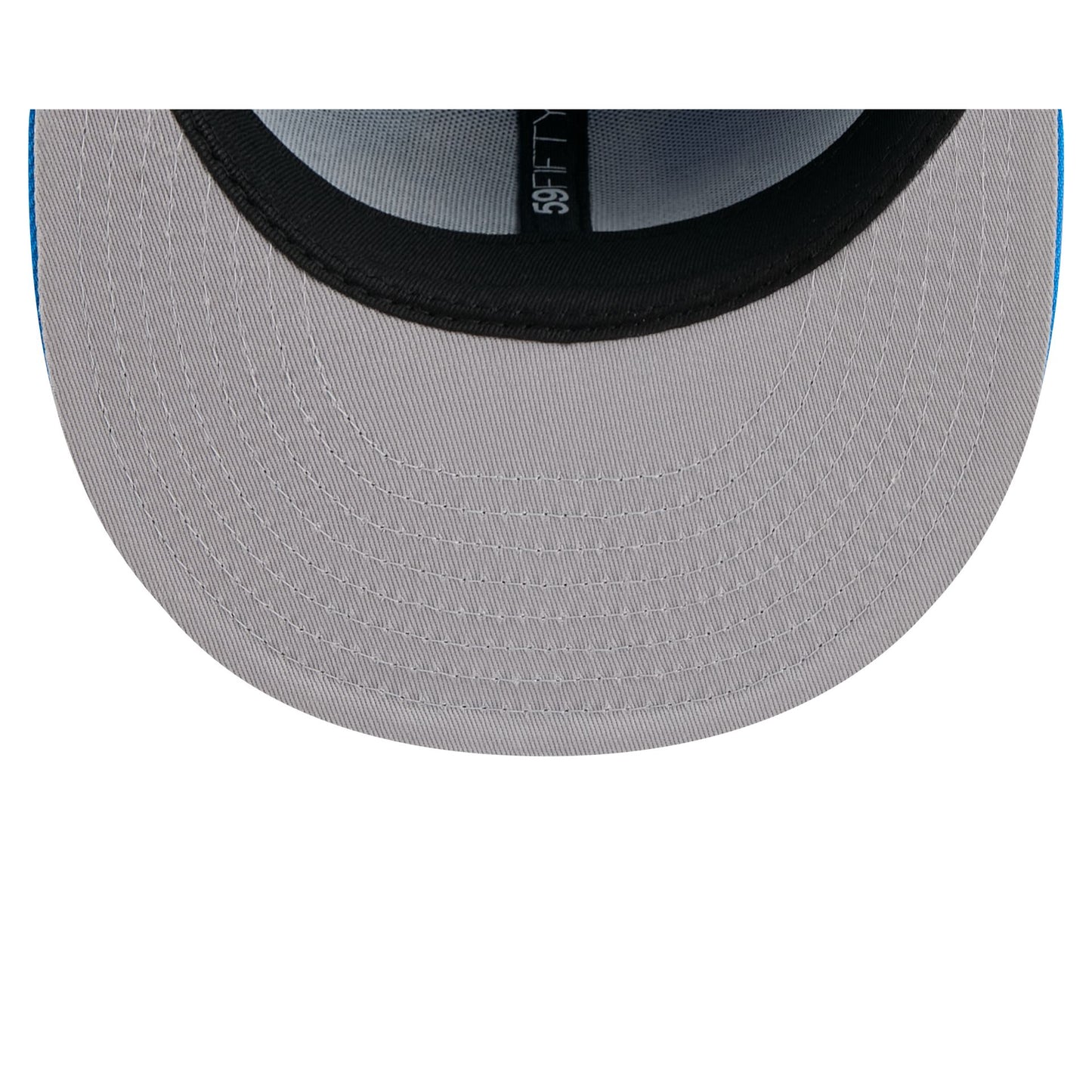 The Detroit Lions Deceptor 59FIFTY Fitted Cap features an embroidered Lions deceptive logo at the front panels with a team logo at the right-wear side. Additional details include a wordmark at the rear, and a gray undervisor.