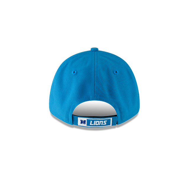 The Detroit Lions The League 9FORTY Adjustable Cap features an embroidered Lions logo at the front panels with the conference logo and team name on an adjustable hook and loop strap at the rear.