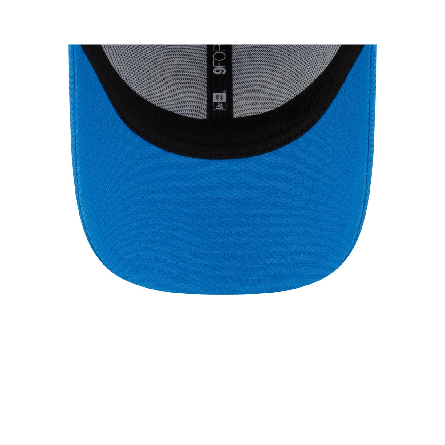 The Detroit Lions The League Blue 9FORTY Adjustable Cap features an embroidered Lions logo at the front panels with the conference logo and team name on an adjustable hook and loop strap at the rear.