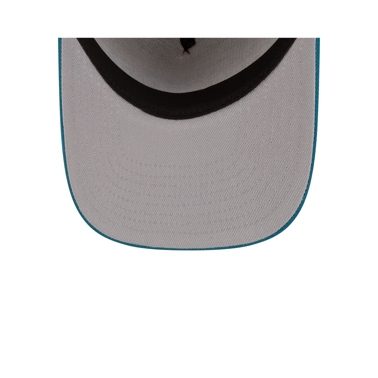 The Detroit Pistons 1996-2001 Hardwood Classics Liner Camel 9FIFTY A-Frame Snapback Cap features an embroidered Pistons 1996-2001 Hardwood Classics graphic at the front panels with a team patch at the right-wear side. Additional details include an adjustable snapback closure at the rear and a gray undervisor.