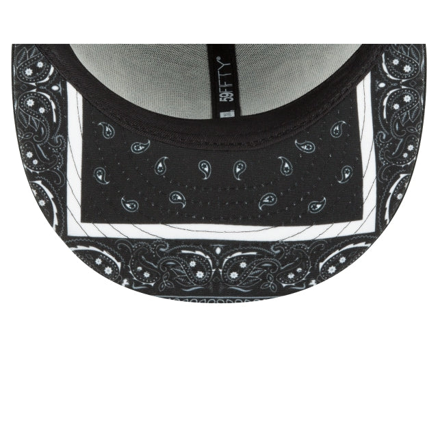 The Detroit Pistons League Script 59FIFTY Fitted cap features an embroidered Eastern Conference script at the front panels with a state outline and team logo at the right-wear panel and a tonal pattern on the undervisor.