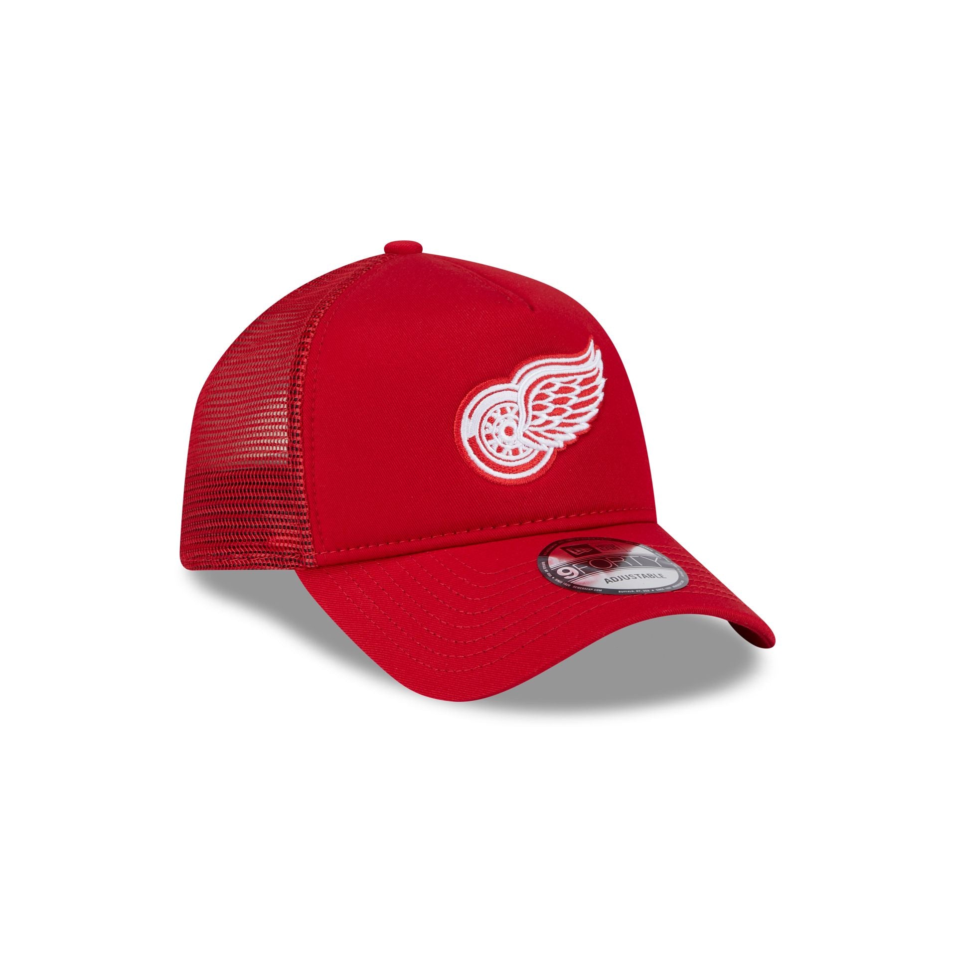 The Detroit Red Wings 9FORTY A-Frame Trucker features an embroidered Red Wings logo at the front panels with a mesh back and snapback closure at the rear.