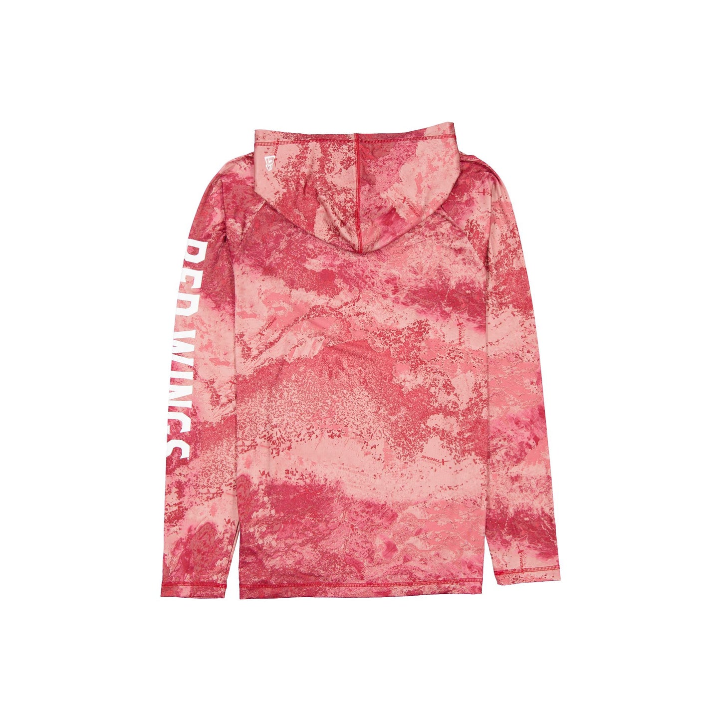 The Detroit Red Wings Adventure Realtree Hoodie features a screen-printed Red Wings logo at the front with a wordmark on the left arm.