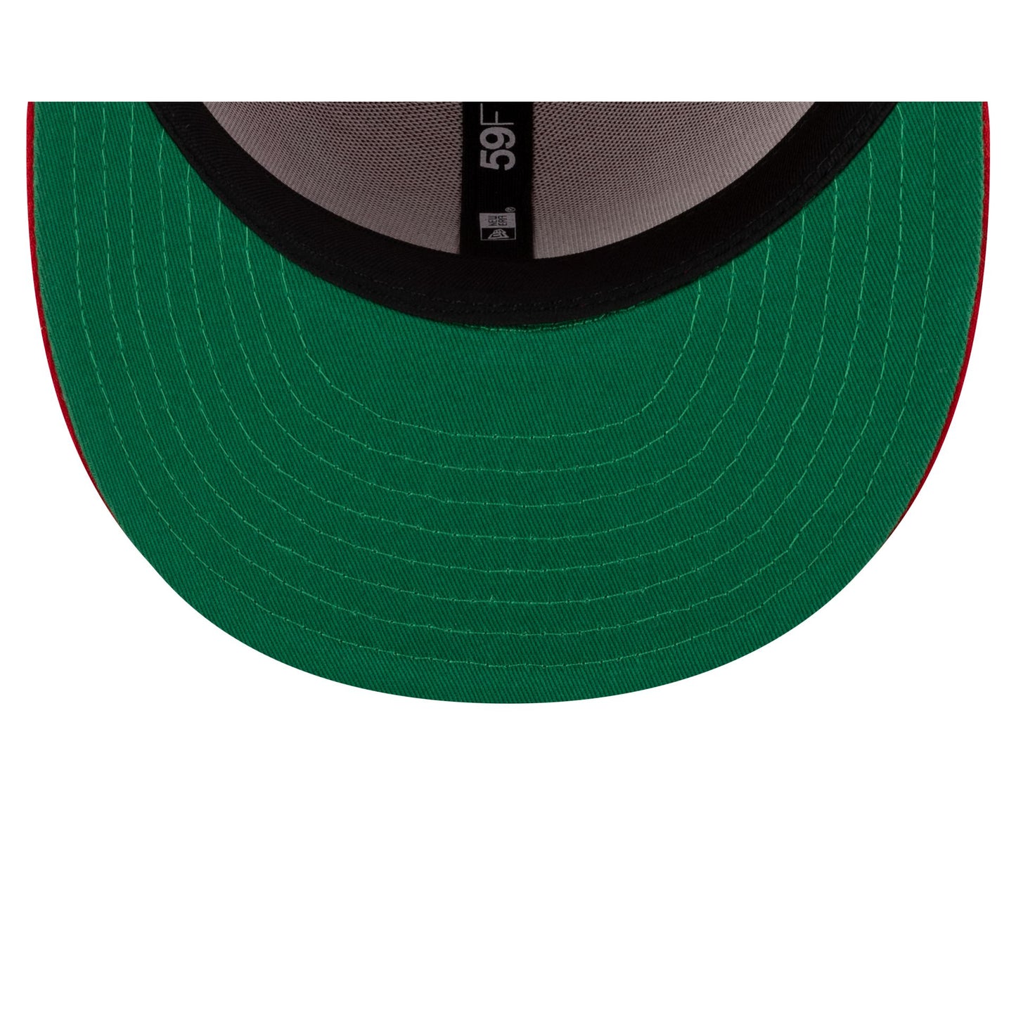 The Detroit Red Wings Campbell 59FIFTY Fitted Cap features an embroidered Red Wings logo at the front panels with a Clarence Campbell Conference patch at the right-wear side. Additional details include an NHL Shield at the rear and a green undervisor.