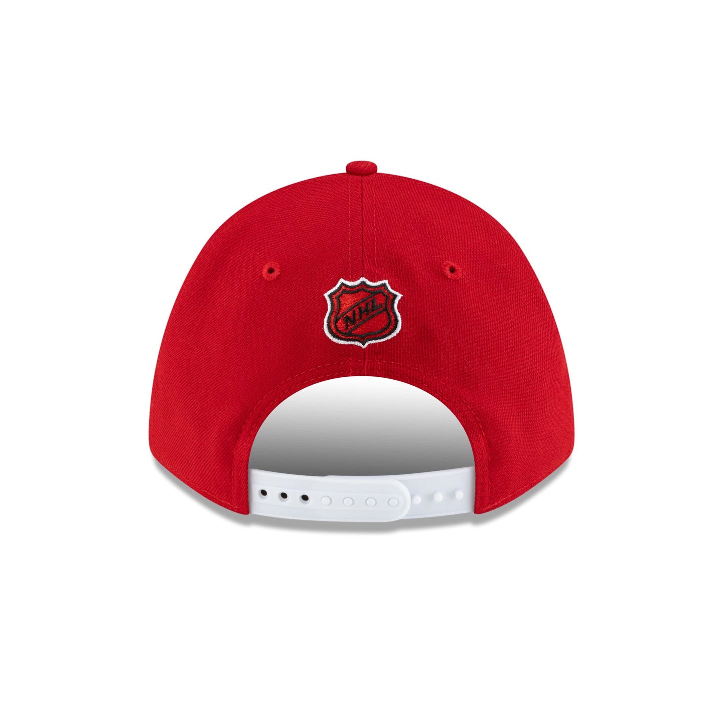 The Detroit Red Wings Retro Arch 9FORTY M-Crown A-Frame Snapback features an embroidered Red Wings arched wordmark and logo at the front panels with the NHL Shield above an adjustable snapback closure at the rear and a gray undervisor.