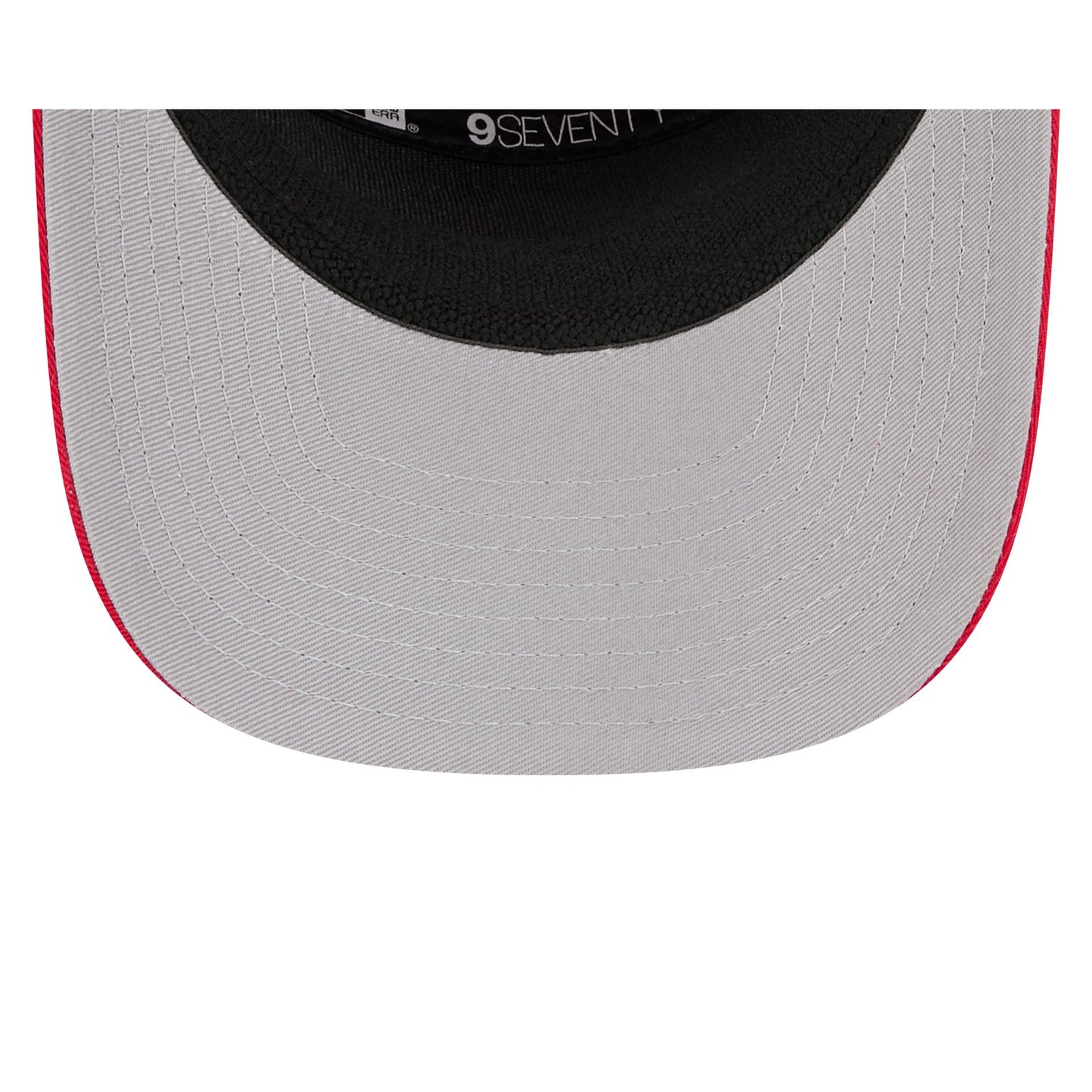 The Detroit Red Wings Split Panel 9SEVENTY Stretch-Snap features an embroidered Red Wings logo at the front panel with a split crown construction and a rope at the visor. Additional details include an adjustable stretch-snap closure at the rear and a gray undervisor.