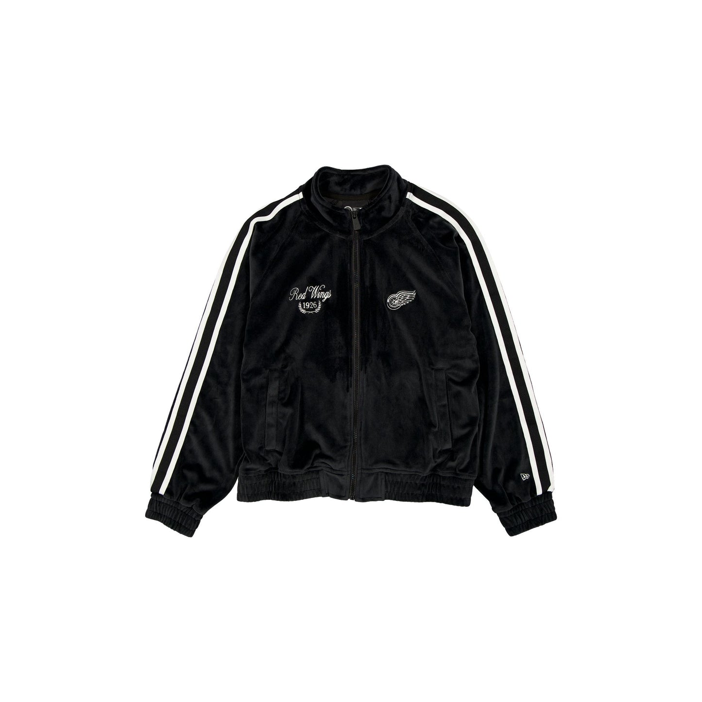 The Detroit Red Wings Throwback Prep Black Women's Track Jacket features an embroidered Red Wings logo at the left chest and script wordmark at the right. Additional details include a full-zip closure and front pockets.