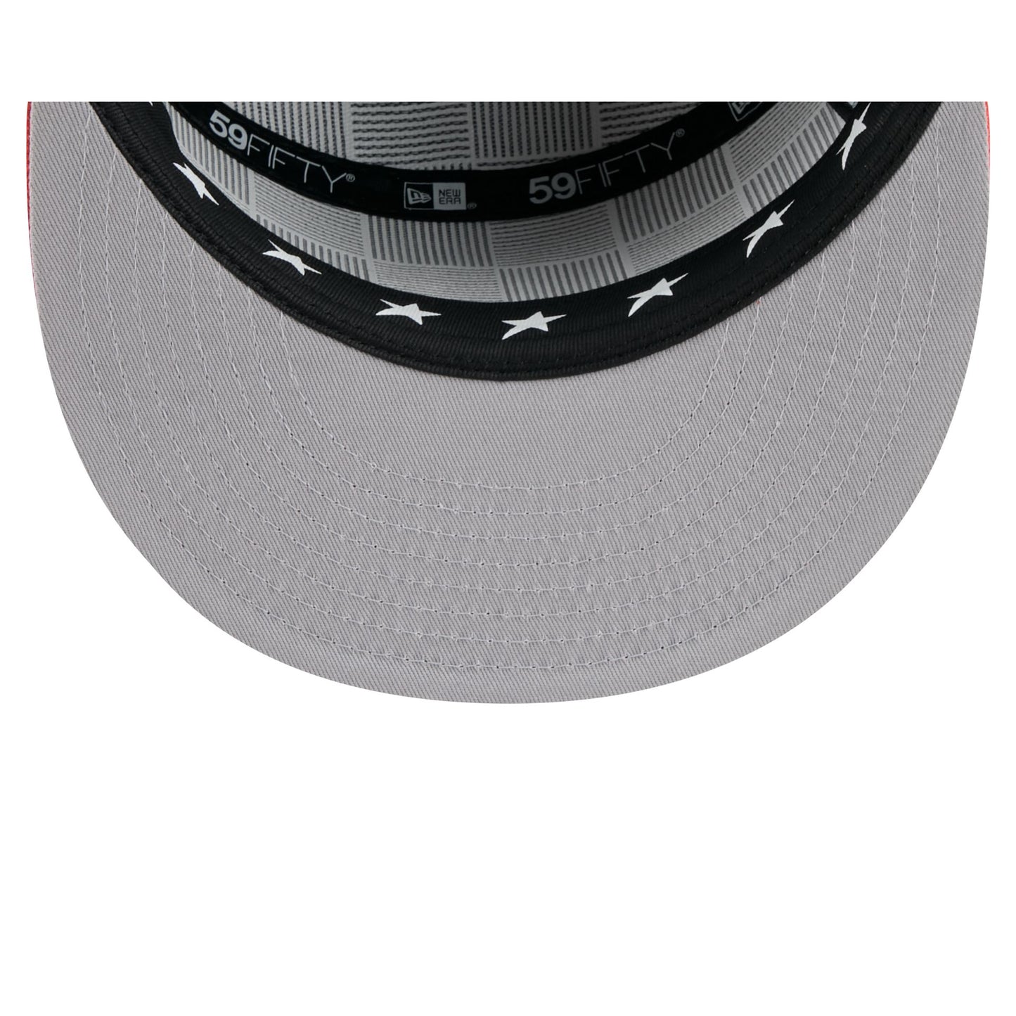 The Detroit Tigers 2025 All-Star Game Split Panel 59FIFTY Fitted Cap features an embroidered Tigers logo at the front panels against a split-crown construction with breathable mesh fabric at the side and rear panels. Additional details include stars at the top panel, a 2025 All-Star Game patch at the right-wear side, the MLB Batterman logo at the rear, and a gray undervisor. The cap also features screen-printed stars on the sweatband.