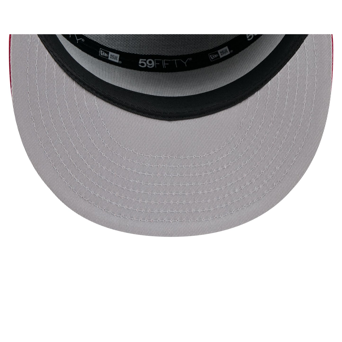 The Detroit Tigers 2025 All-Star Game Workout Split Panel 59FIFTY Fitted Cap features an embroidered Tigers logo at the front panels against a split-crown construction with breathable mesh fabric at the side and rear panels. Additional details include stars at the top panel, a 2025 All-Star Game patch at the right-wear side, the MLB Batterman logo at the rear, and a gray undervisor.