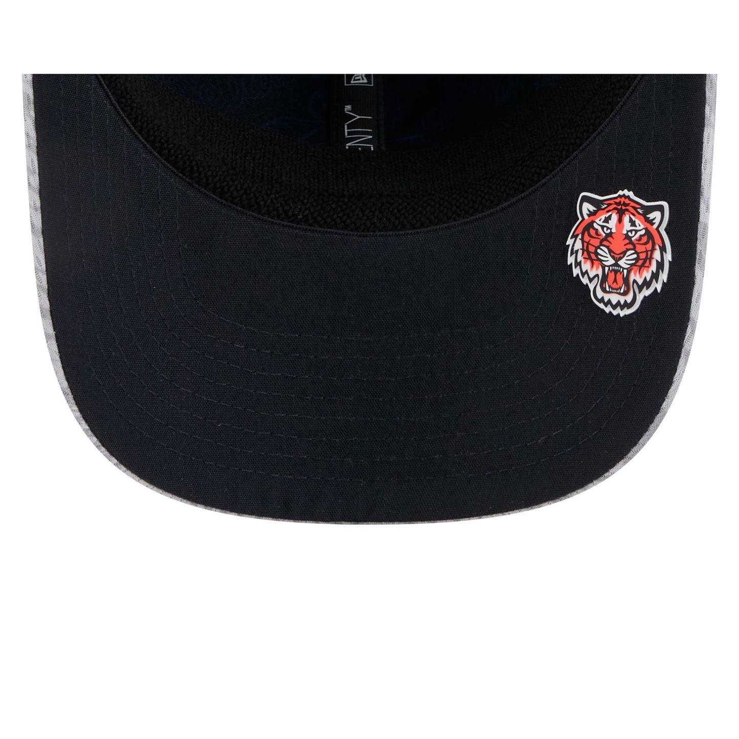 The Detroit Tigers 2025 Clubhouse Gray 9SEVENTY Stretch-Snap Cap features an embroidered Tigers logo at the front panels with a matching MLB Batterman logo above a snapback closure at the rear and a dashmark mesh fabrication throughout. Additional details include a silicone team tag on the right-wear side and team logo on the undervisor.