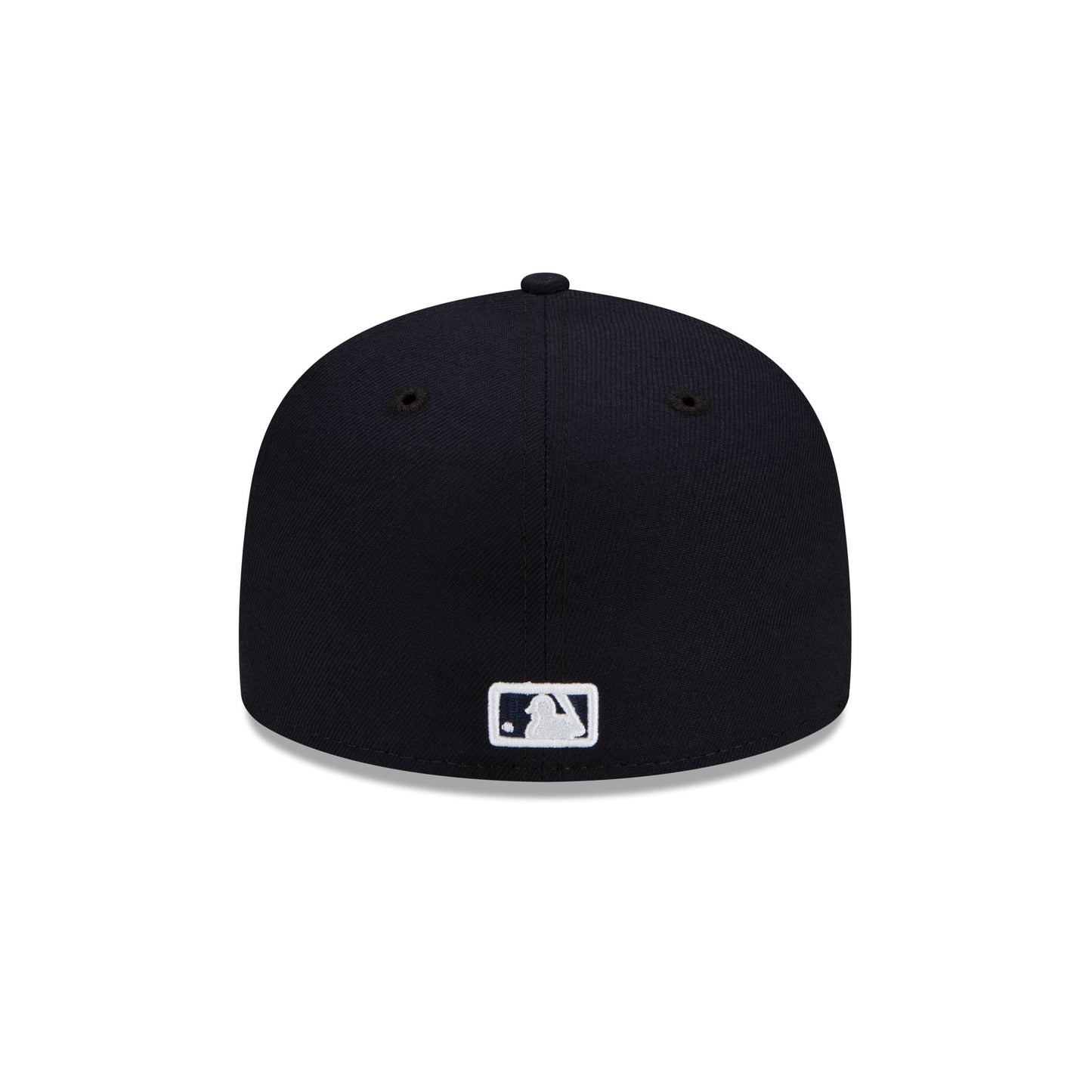 The Detroit Tigers 2025 Postseason Side Patch 59FIFTY Fitted Cap features an embroidered Tigers logo at the front panels with a 2025 Postseason patch at the right-wear side and the MLB Batterman logo at the rear.
