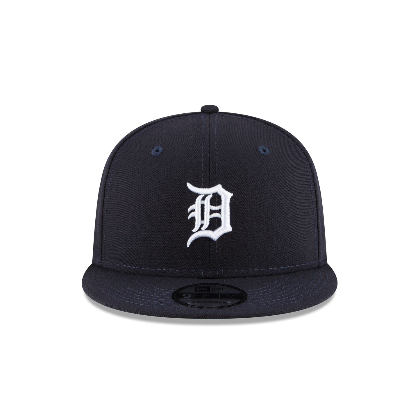 The Detroit Tigers 2025 Postseason Side Patch 9FIFTY Snapback features an embroidered Tigers logo at the front panels with a 2025 Postseason patch at the right-wear side and an adjustable snapback closure at the rear.