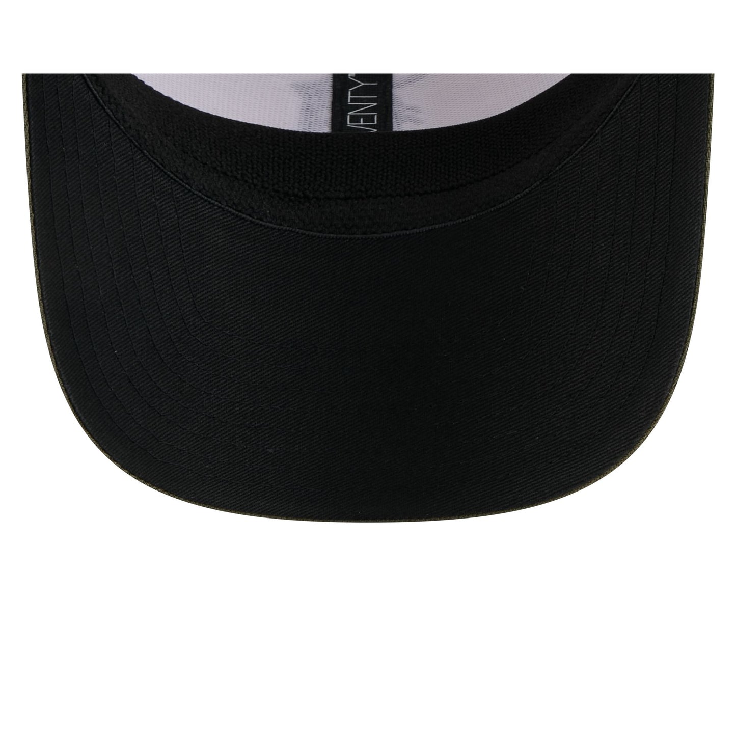 The Detroit Tigers Armed Forces Day 2025 9SEVENTY Trucker features an embroidered Tigers logo at the front panels with the American Flag embroidered at the right-wear side. Additional details include an MLB Batterman logo above a stretch-snap mesh closure at the rear and a black undervisor.
