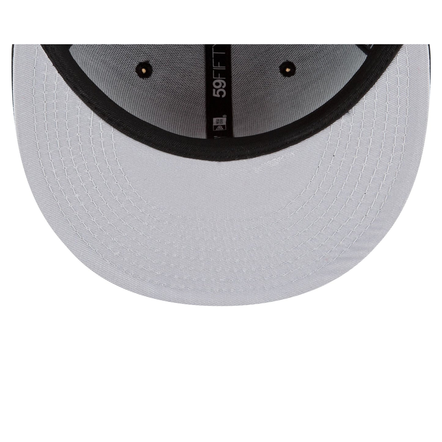 The Detroit Tigers Basic Black and White 59FIFTY Fitted Cap features an embroidered Tigers logo at the front panels with a matching MLB Batterman logo at the rear and a gray undervisor.