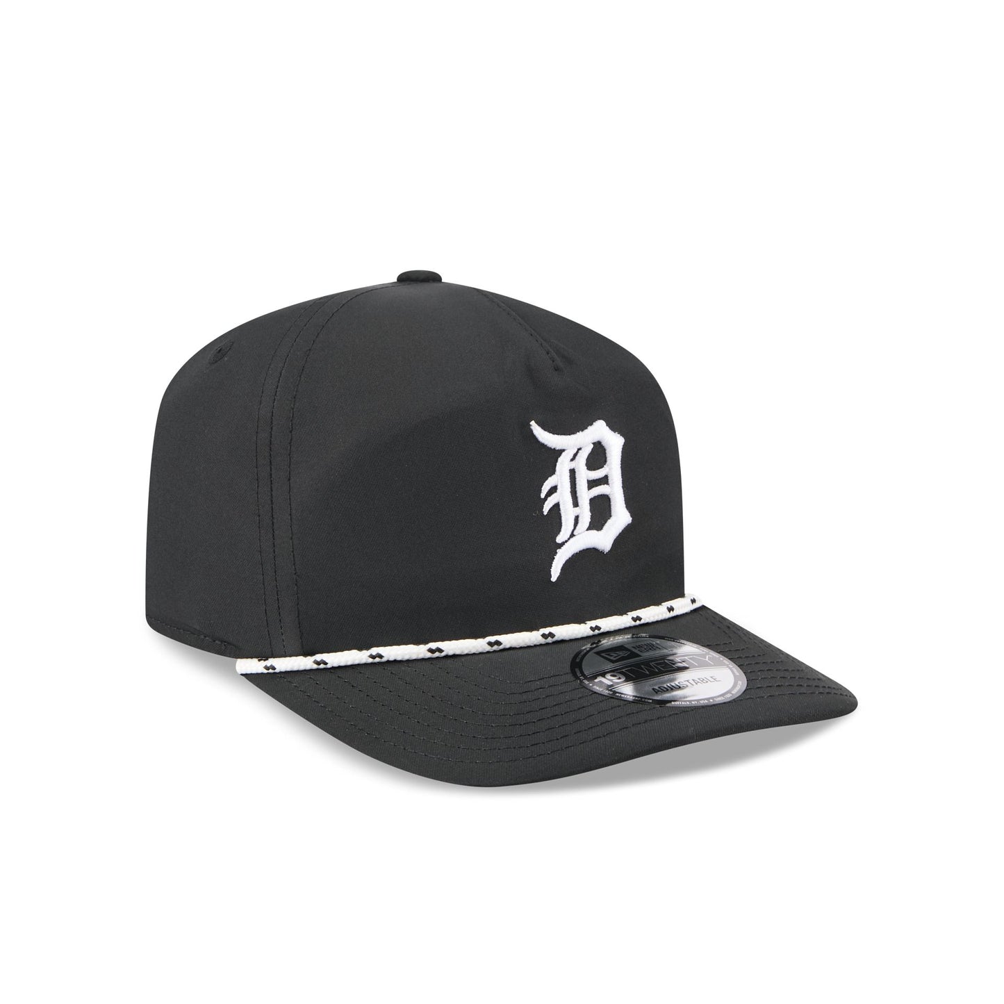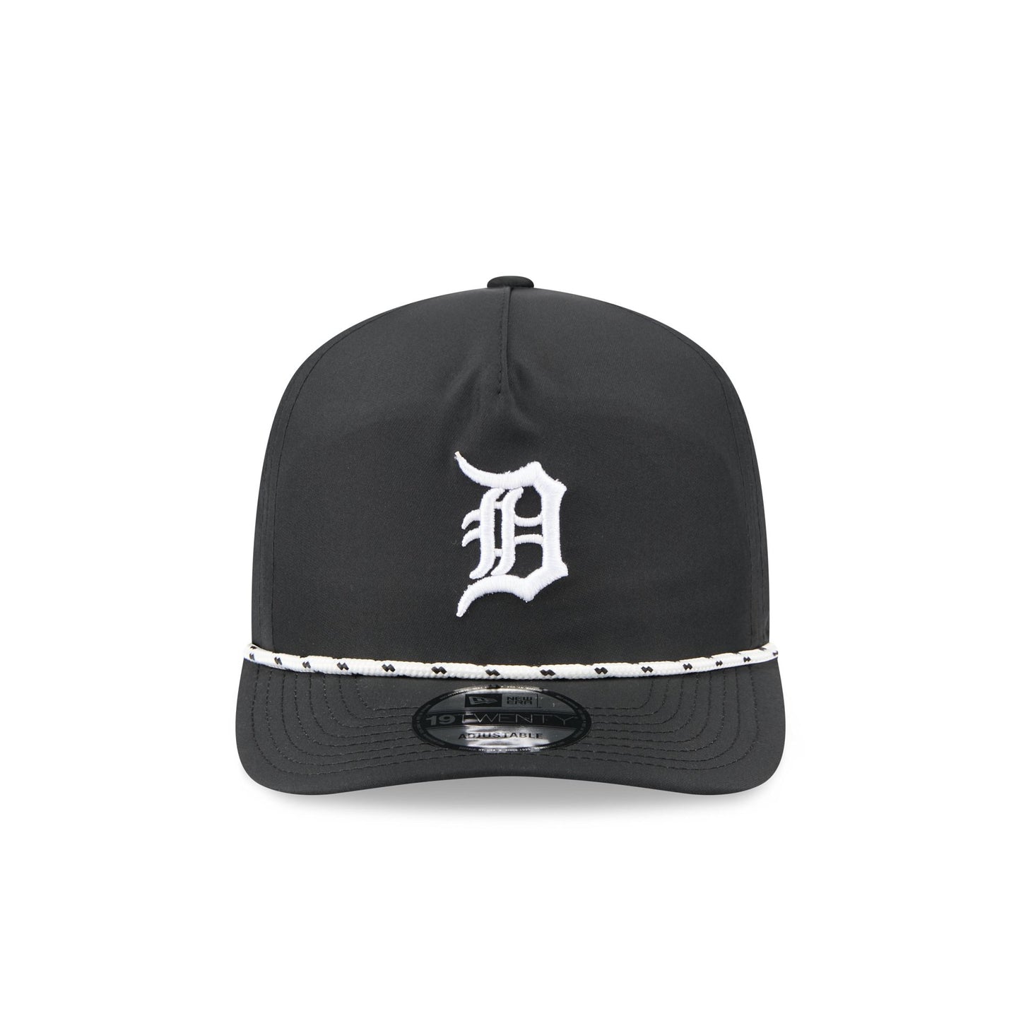 The Detroit Tigers Black and White Rope 19TWENTY Snapback features an embroidered Tigers logo and rope at the front with a snapback closure at the rear and a gray undervisor.