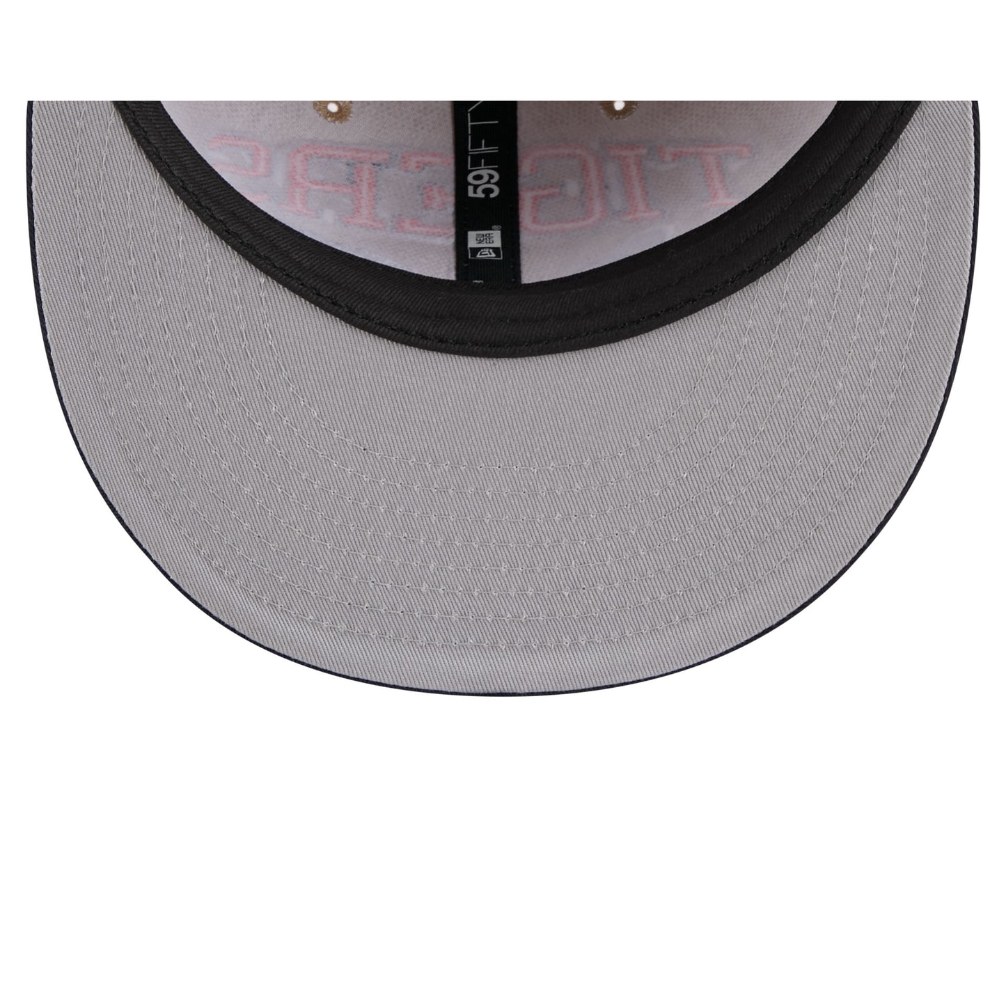 The Detroit Tigers Camel Retro Crown 59FIFTY Fitted Cap features an embroidered Tigers Cooperstown wordmark, logo, and league patch at the front panels. Additional details include an MLB Batterman logo at the rear and a gray undervisor.