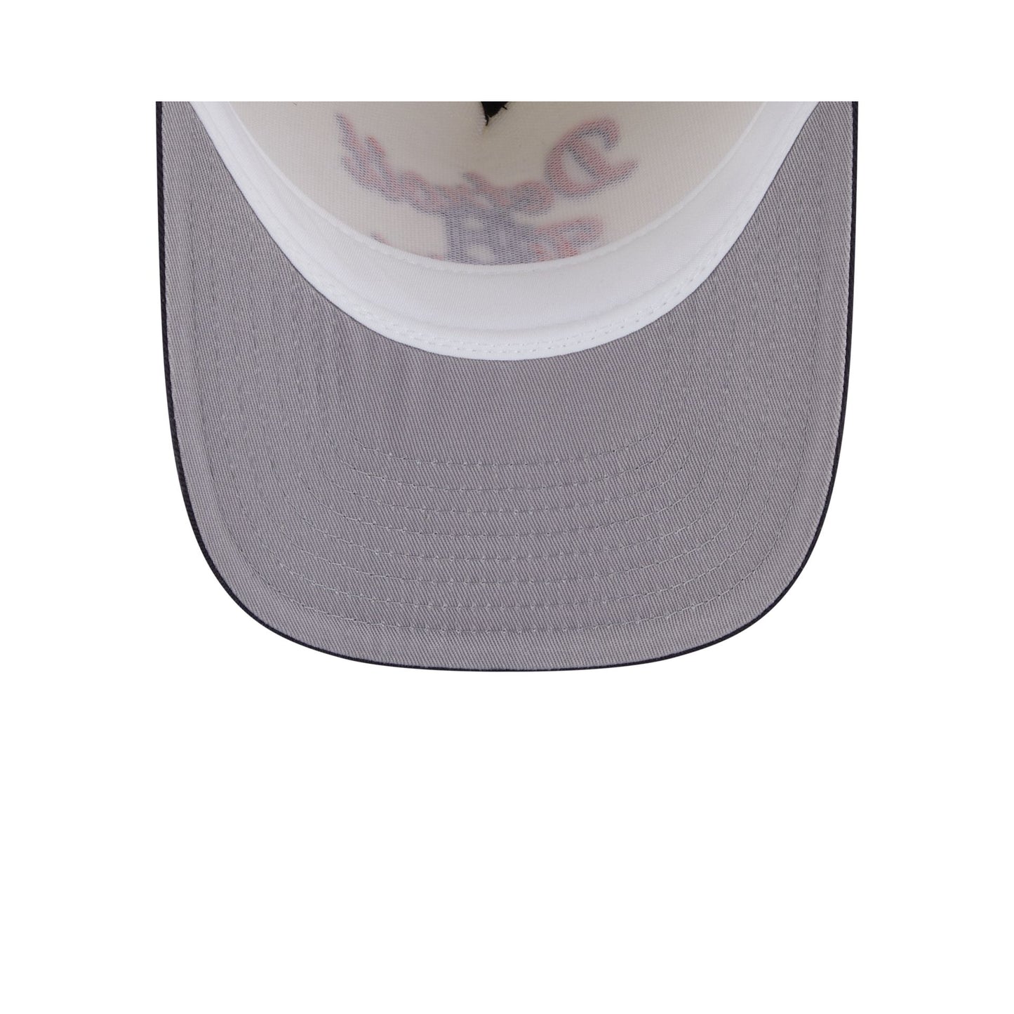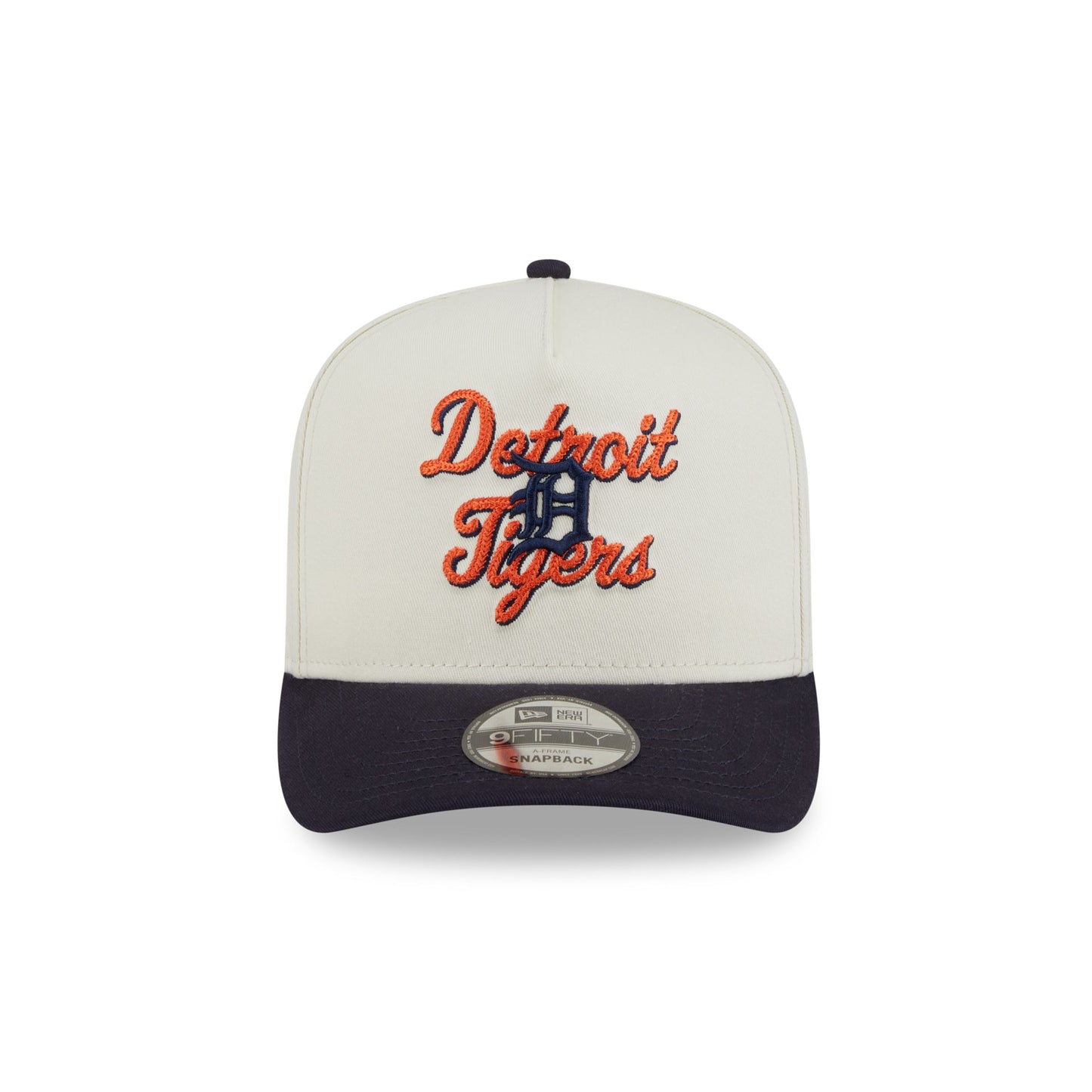 The Detroit Tigers Chainstitch 9FIFTY A-Frame Snapback features a chainstitch Tigers logo and script wordmark at the front panels with a snapback closure at the rear and a gray undervisor.