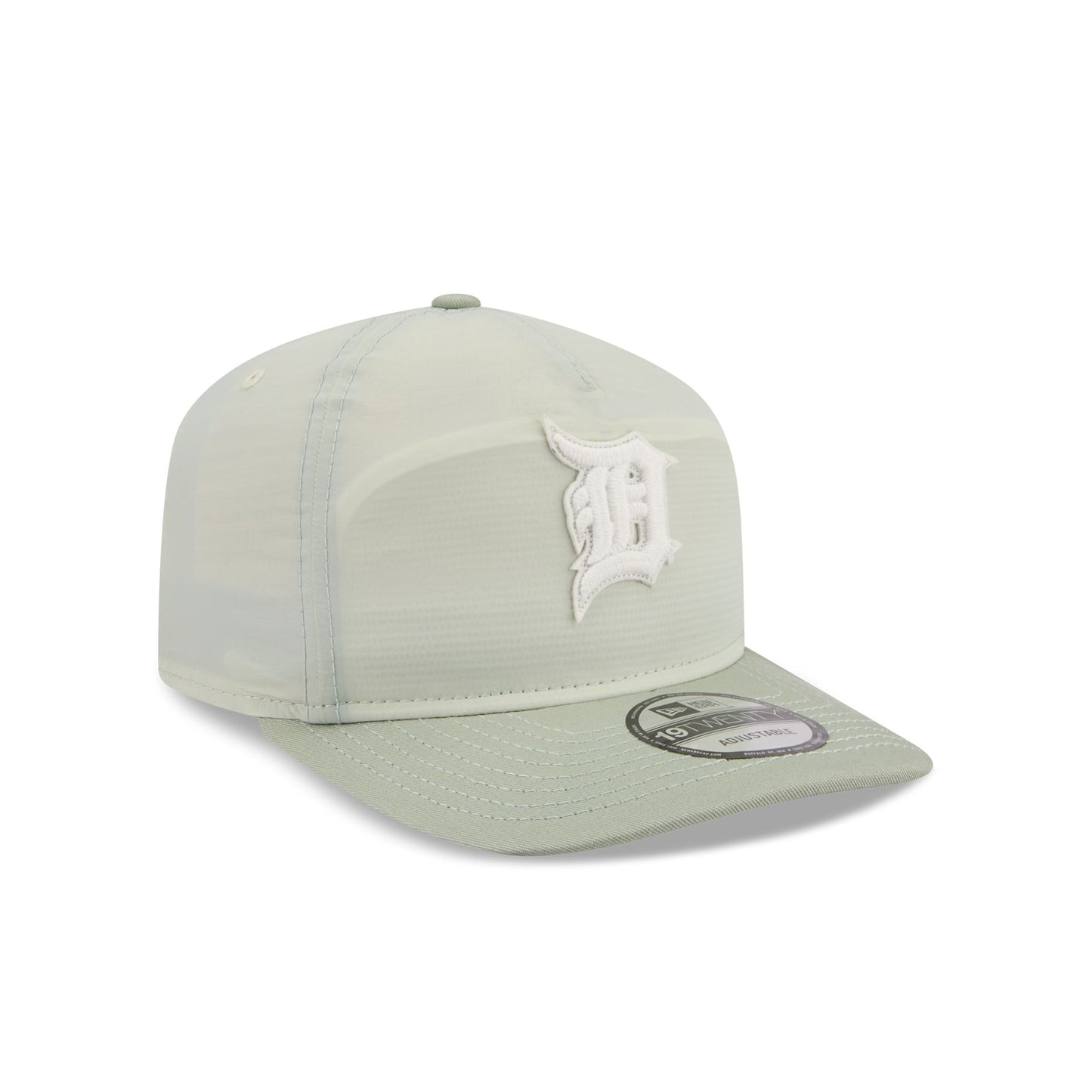 The Detroit Tigers Crinkle 19TWENTY Adjustable Cap features an embroidered Tigers logo at the front panels with a nylon fabrication throughout. Additional details include the MLB Batterman logo above an adjustable snapback closure at the rear and a green undervisor.