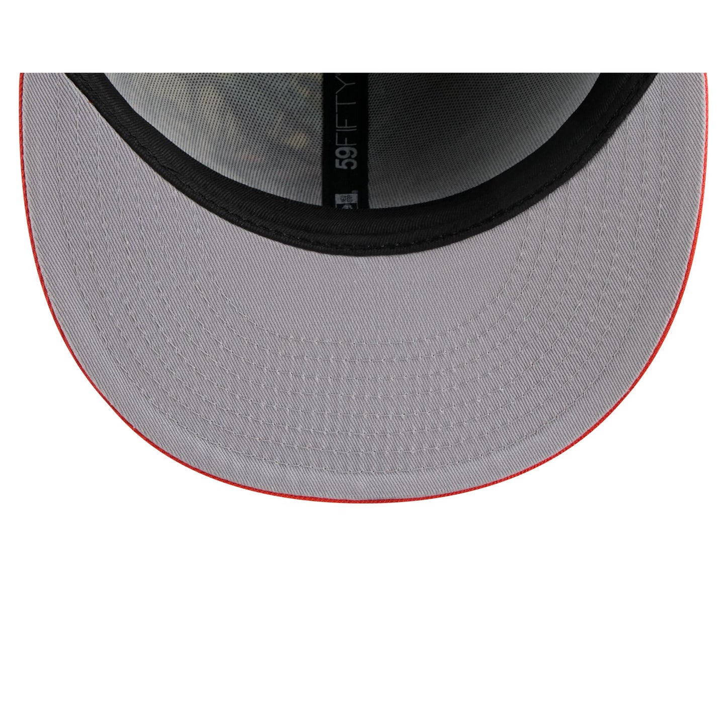The Detroit Tigers Diamond Hero Edition 59FIFTY Fitted Cap features an embroidered Tigers onomatopoeia pop logo at the front panels with baseball comic book prints at the front and back panel. Additional details include the MLB Batterman logo at the rear and a gray undervisor.