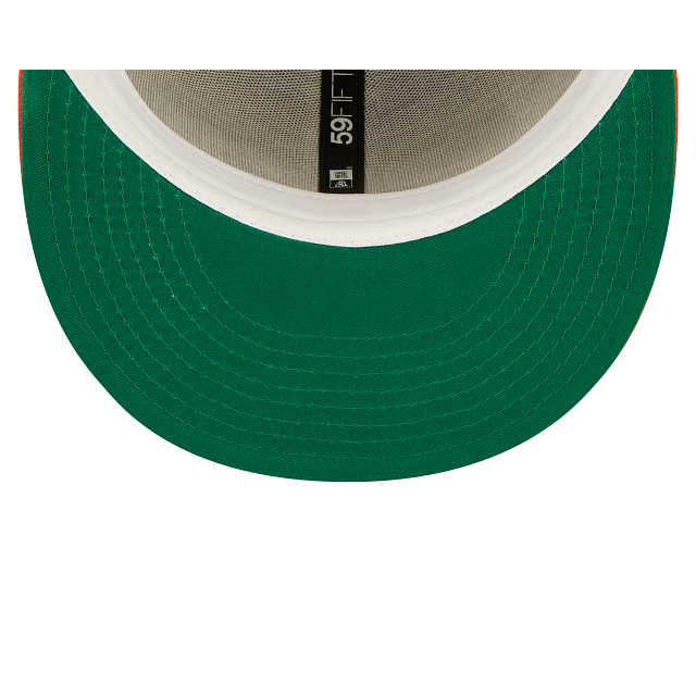 The Detroit Tigers Logo Pinwheel 59FIFTY Fitted Cap features six different embroidered Tigers logos throughout the crown, and an MLB Batterman logo at the rear. Additional details include a green undervisor.