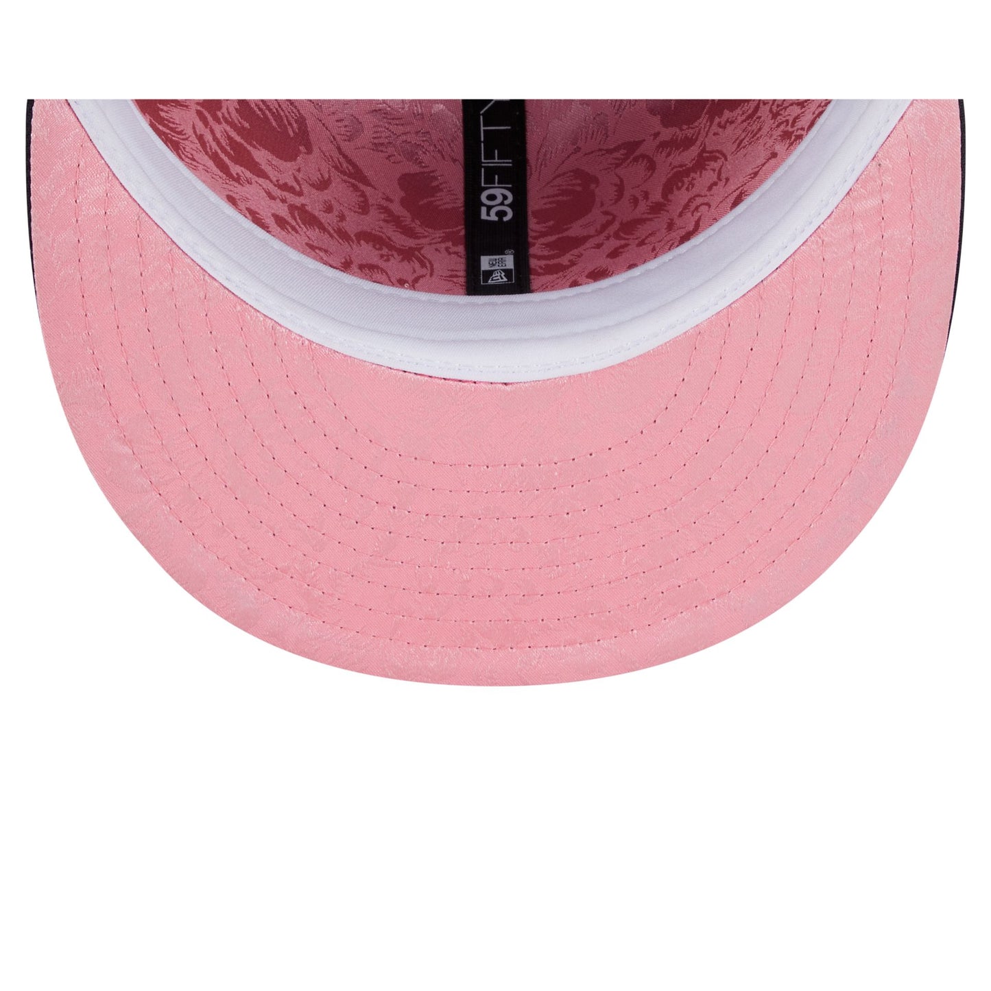 The Detroit Tigers Floral Undervisor 59FIFTY Fitted Cap features an embroidered Tigers logo at the front panels with a matching MLB Batterman logo at the rear. Additional details include a floral team patch at the right-wear side with a pink floral undervisor and lining.