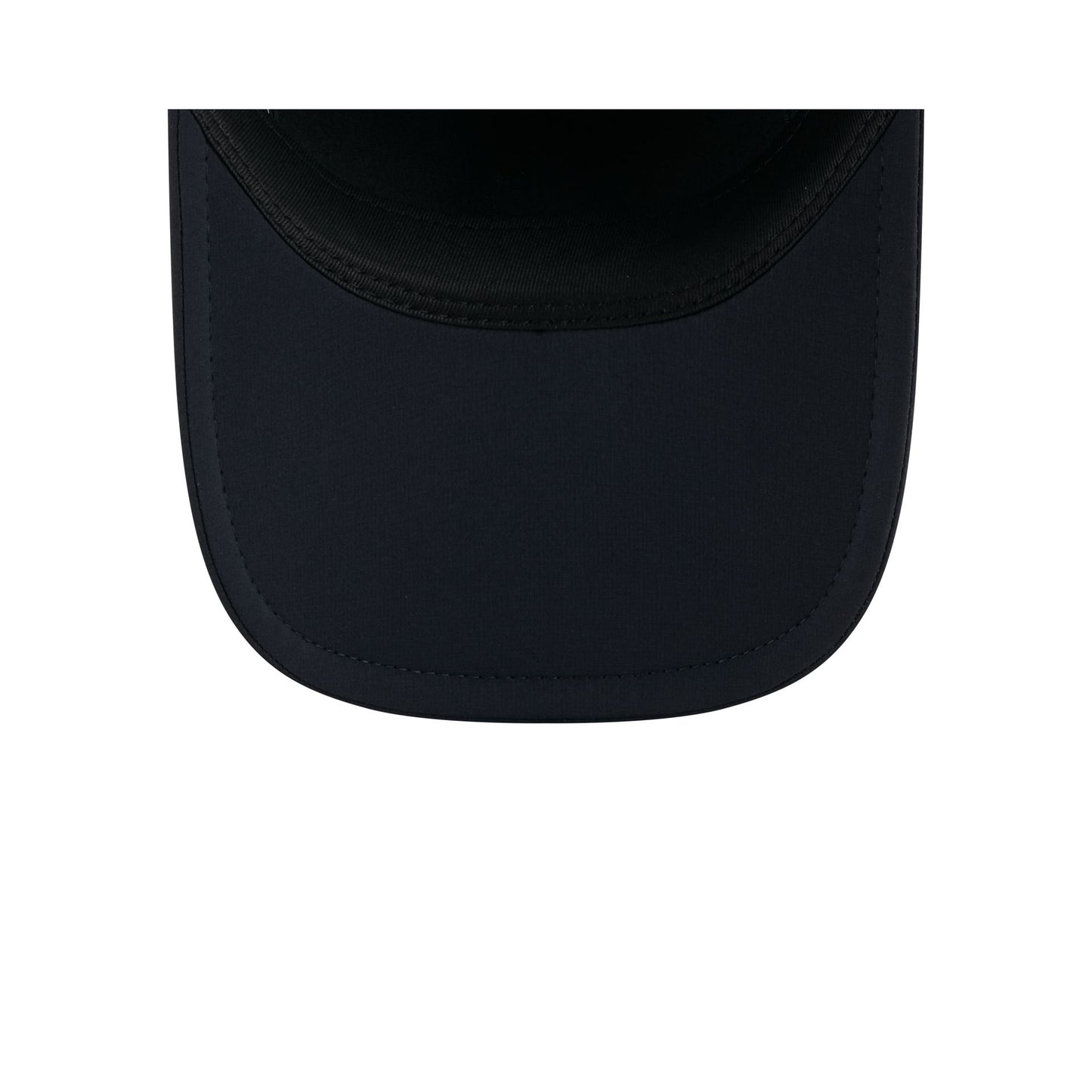 The Detroit Tigers Poly Runner Cap features a heat sealed Tigers logo at the front panels with mesh side panels. Additional details include a silicone patch above an adjustable drawstring closure at the rear.
