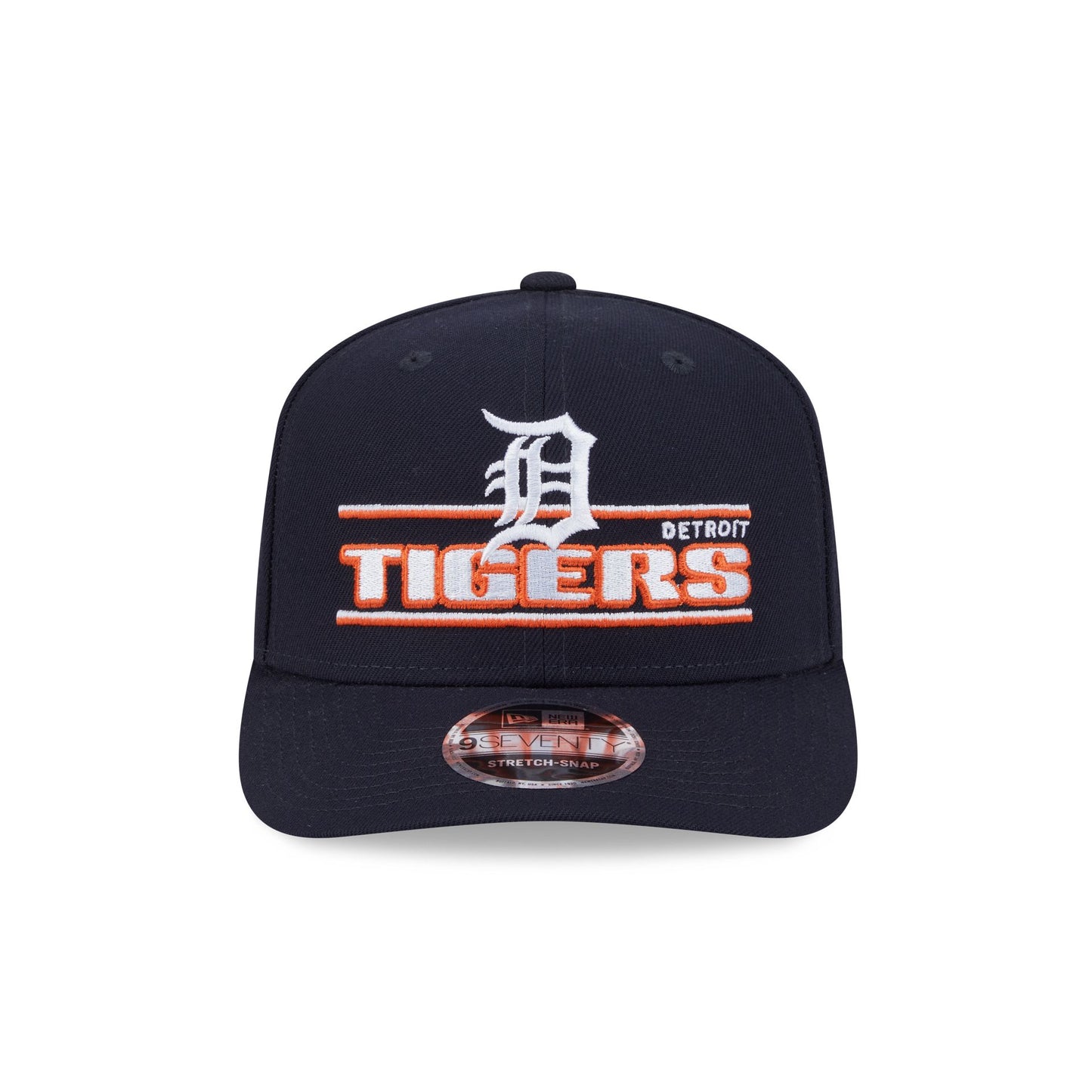 The Detroit Tigers Stated 9SEVENTY Stretch-Snap features an embroidered Tigers graphic a the front panels with an adjustable stretch-snap closure at the rear and a gray undervisor.