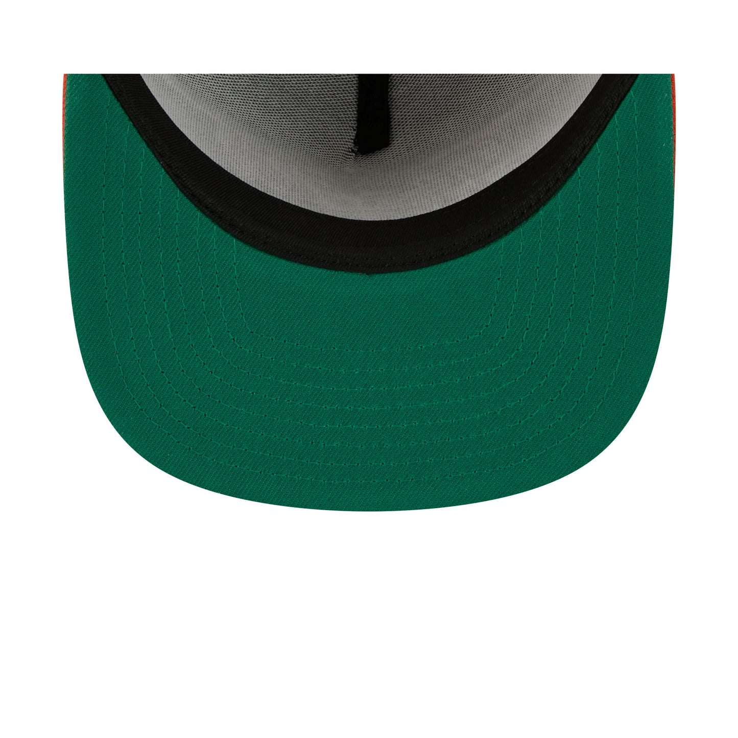 The Detroit Tigers Summer Derby 59FIFTY A-Frame Fitted Cap features an embroidered Tigers wordmark over team color stripes at the front panels with a matching MLB Batterman logo at the rear. Additional details include a 2005 All-Star game patch at the right-wear side, an orange visor, and a green undervisor.